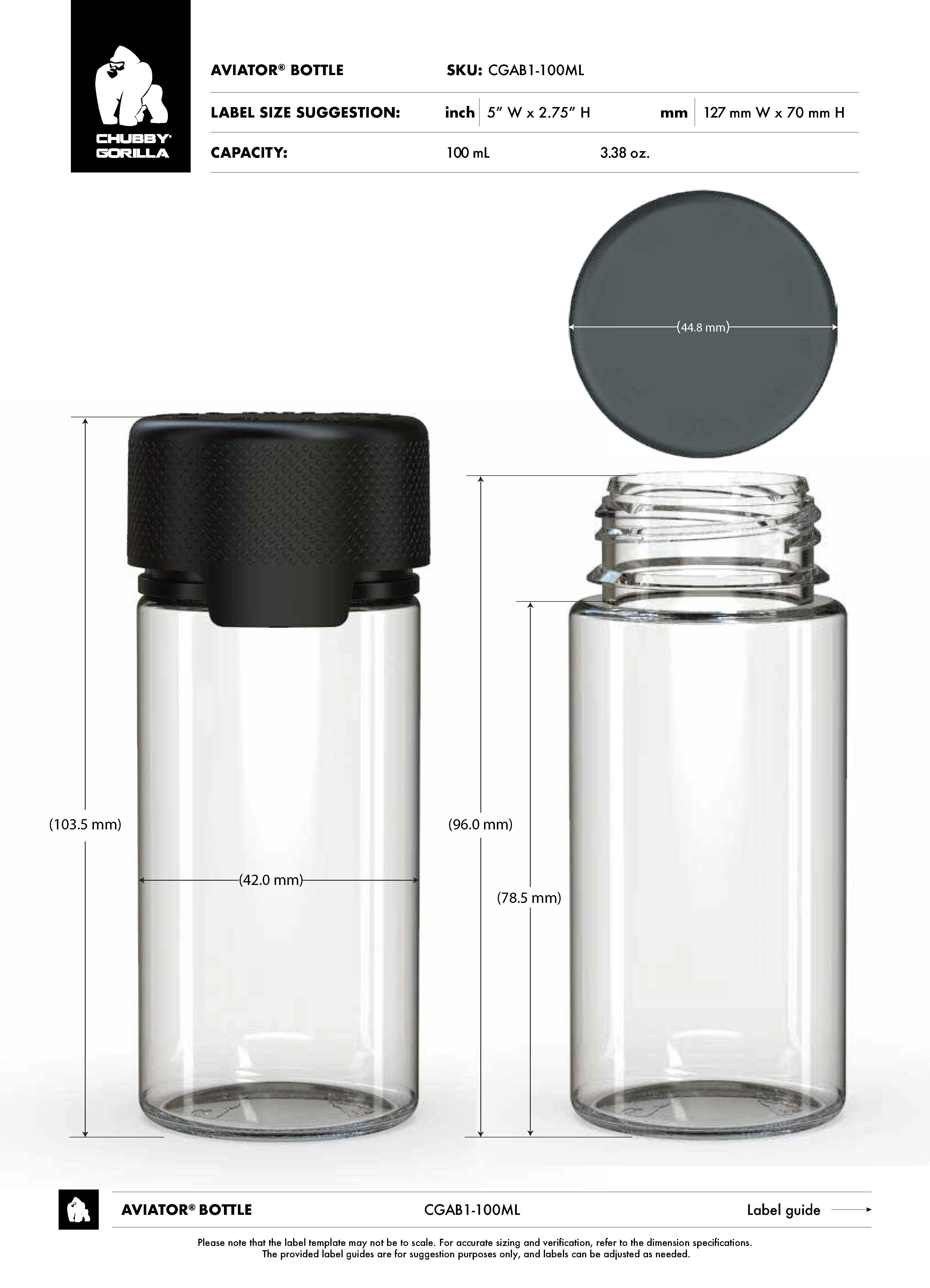 100ML CR AVIATOR BOTTLE WITH TAMPER EVIDENT (CLEAR BOTTLE WITH BLACK CLOSURE)
