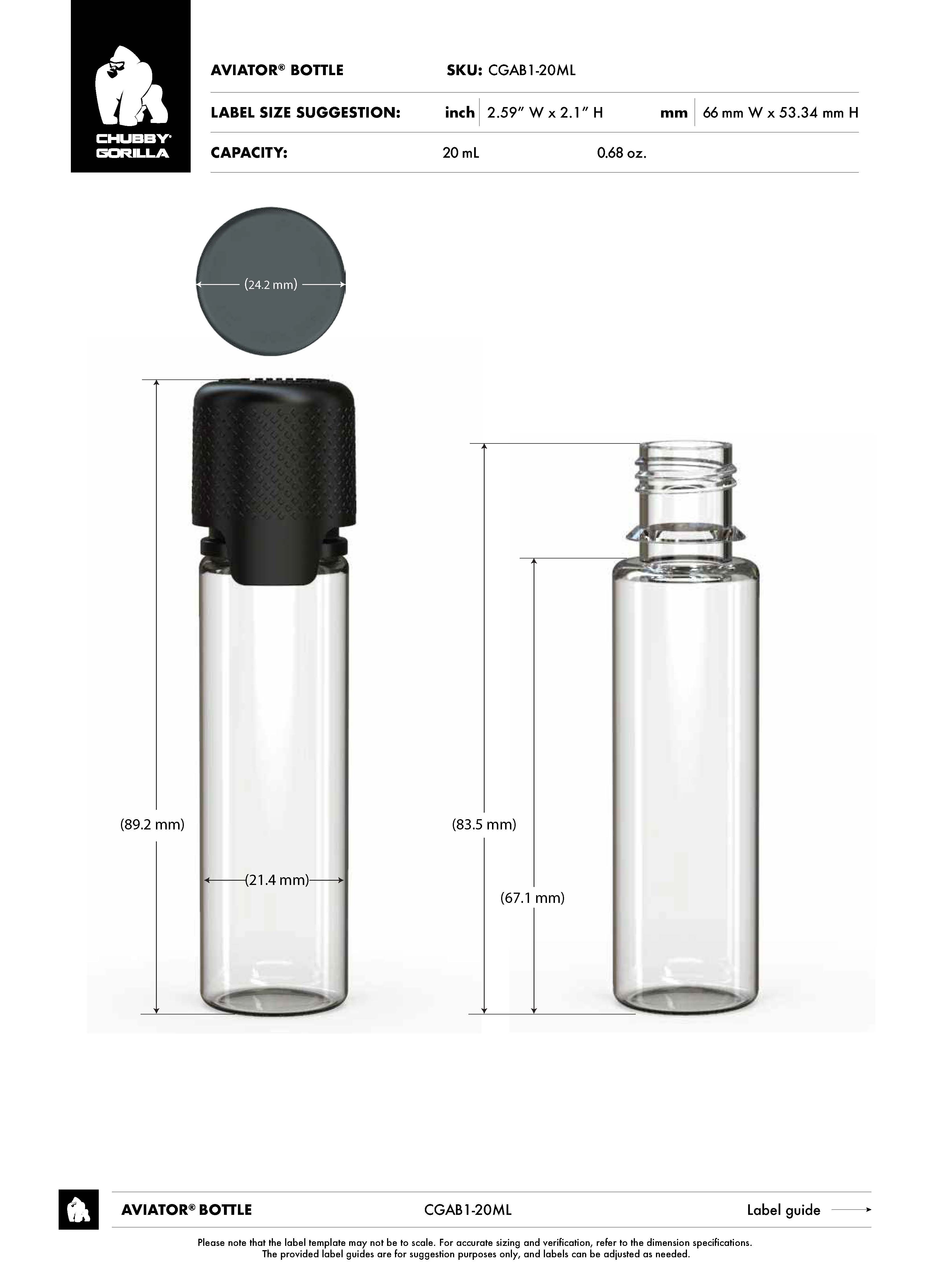 20ML CR AVIATOR BOTTLE WITH TAMPER EVIDENT (CLEAR BOTTLE WITH BLACK CLOSURE)