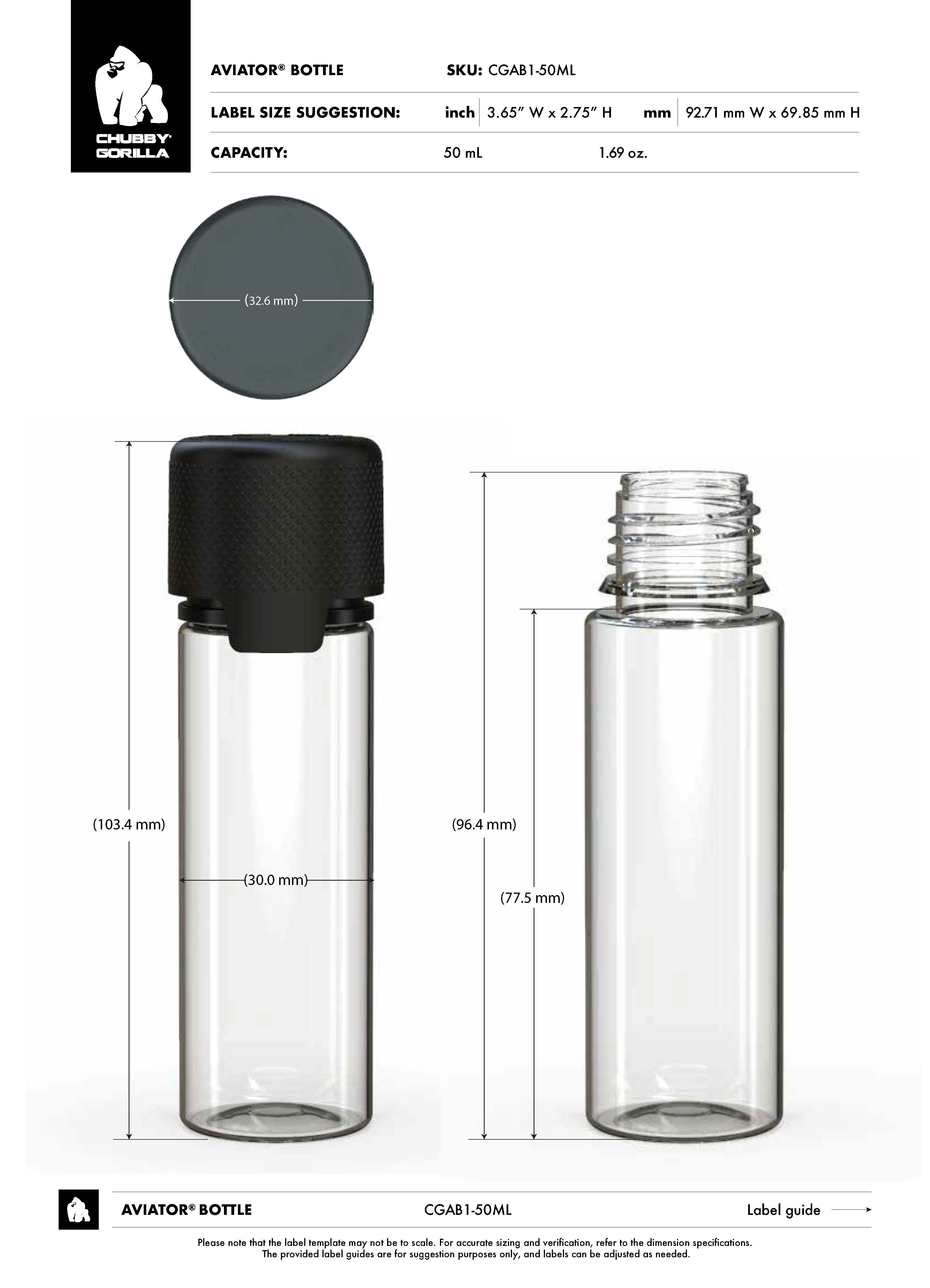 50ML CR AVIATOR BOTTLE WITH TAMPER EVIDENT (BLACK BOTTLE WITH BLACK CLOSURE)