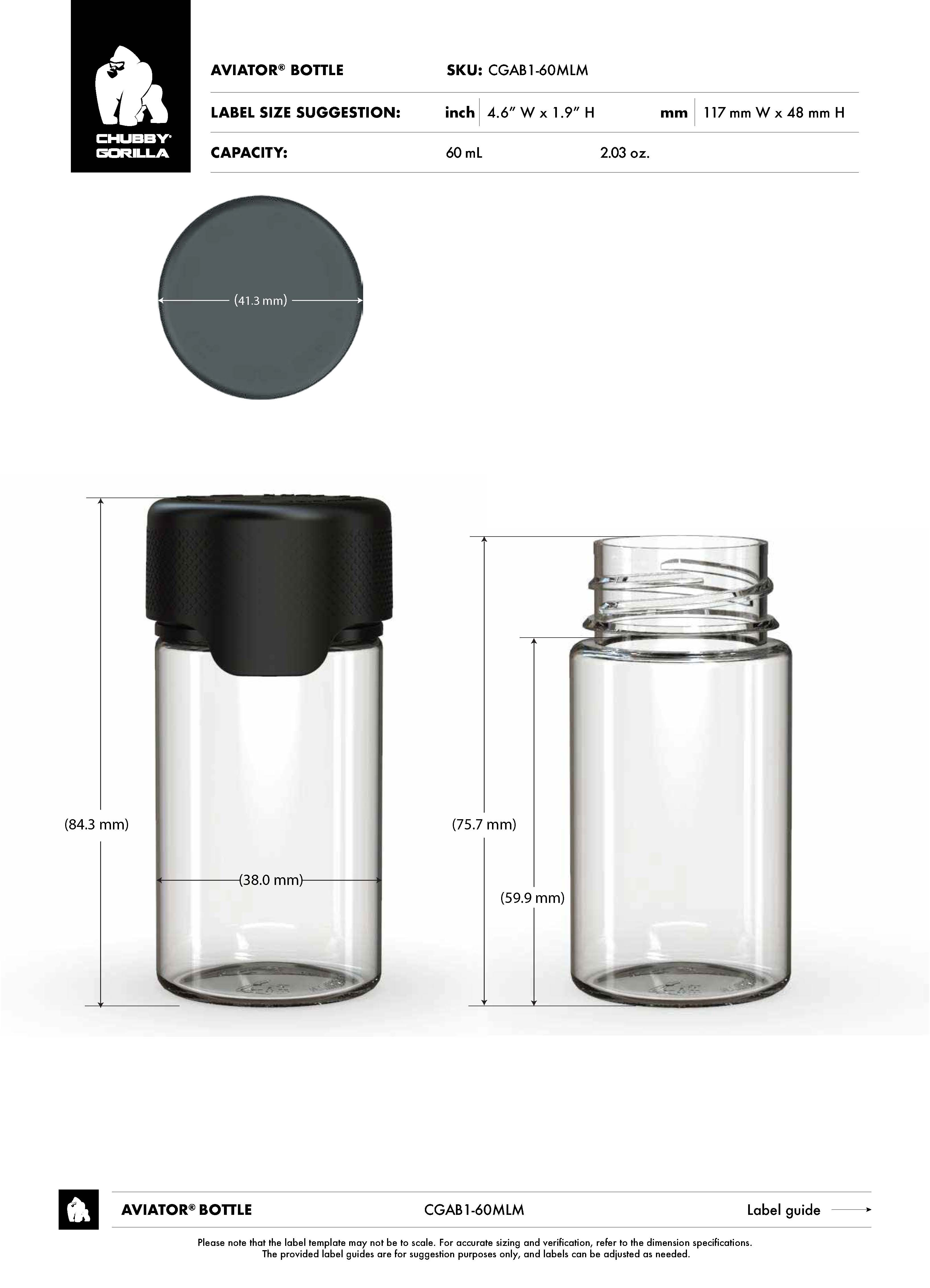 60ML AVIATOR MINI BOTTLE WITH INNER SEAL, & TAMPER EVIDENT BREAKOFF BAND (CLEAR NATURAL BOTTLE WITH OPAQUE WHITE CLOSURE)