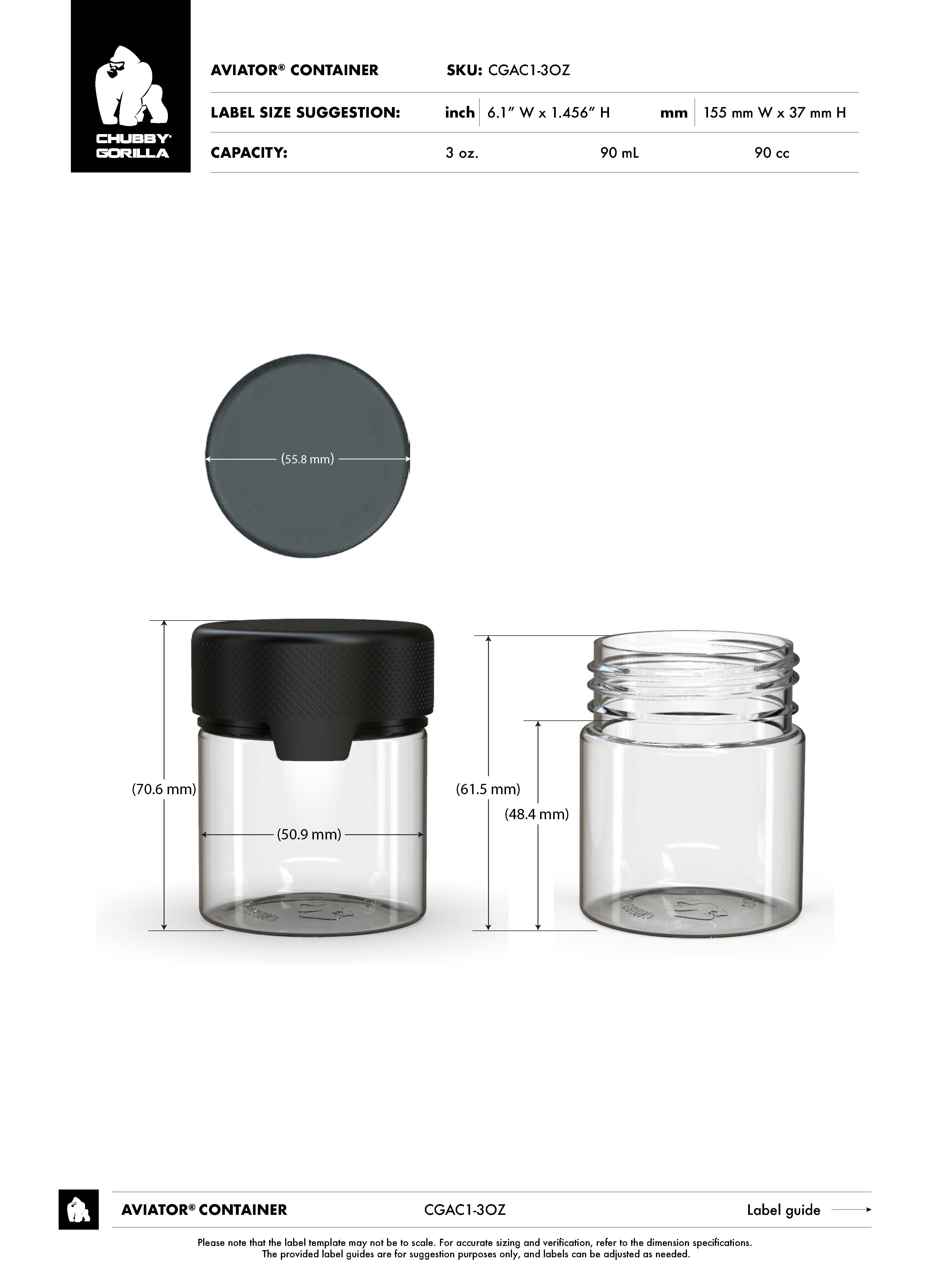 3OZ CR AVIATOR CONTAINER WITH LINER & TAMPER EVIDENT (BLACK CONTAINER WITH BLACK CLOSURE)