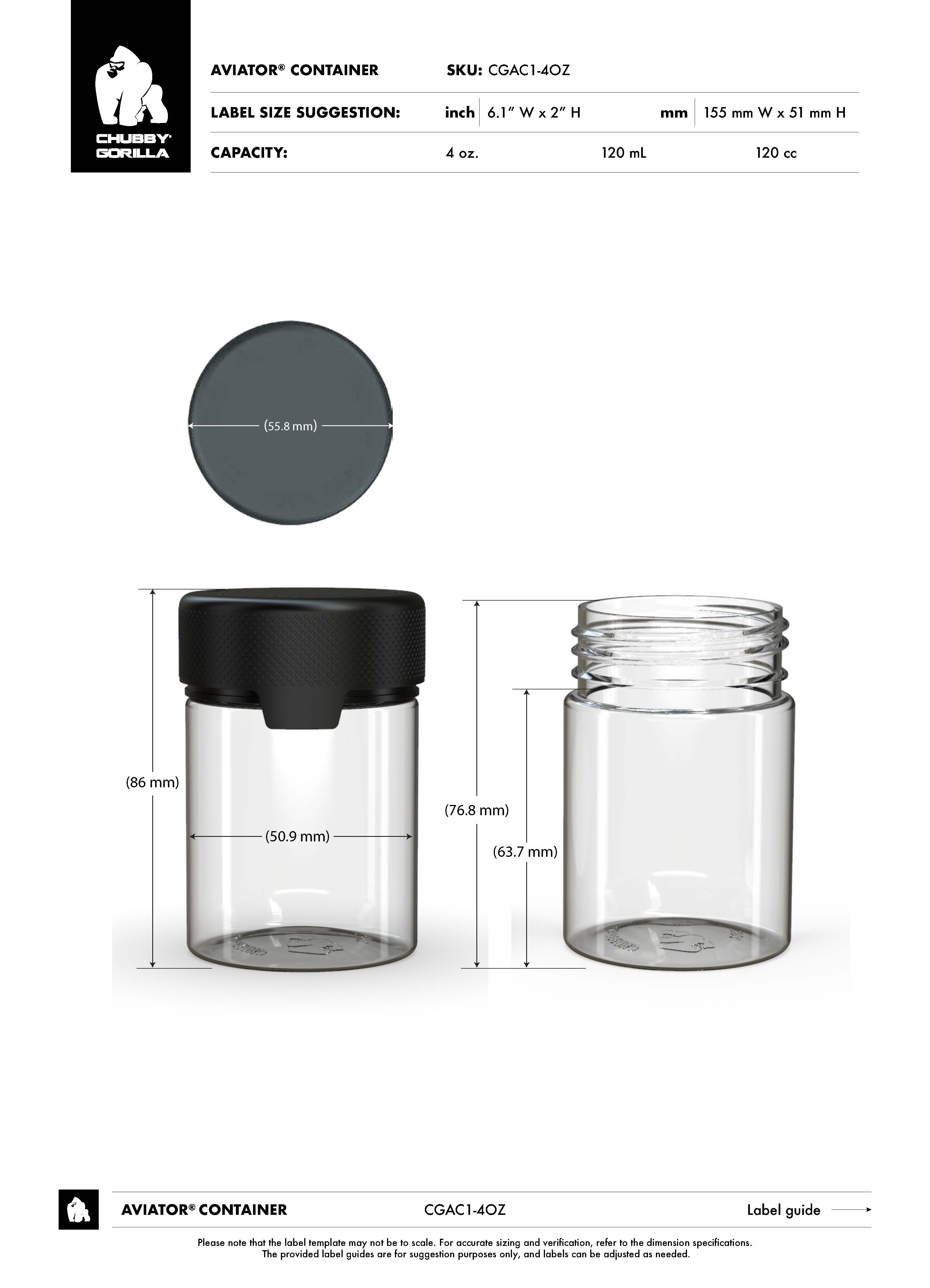 4OZ CR AVIATOR CONTAINER WITH LINER & TAMPER EVIDENT (BLACK CONTAINER WITH BLACK CLOSURE)