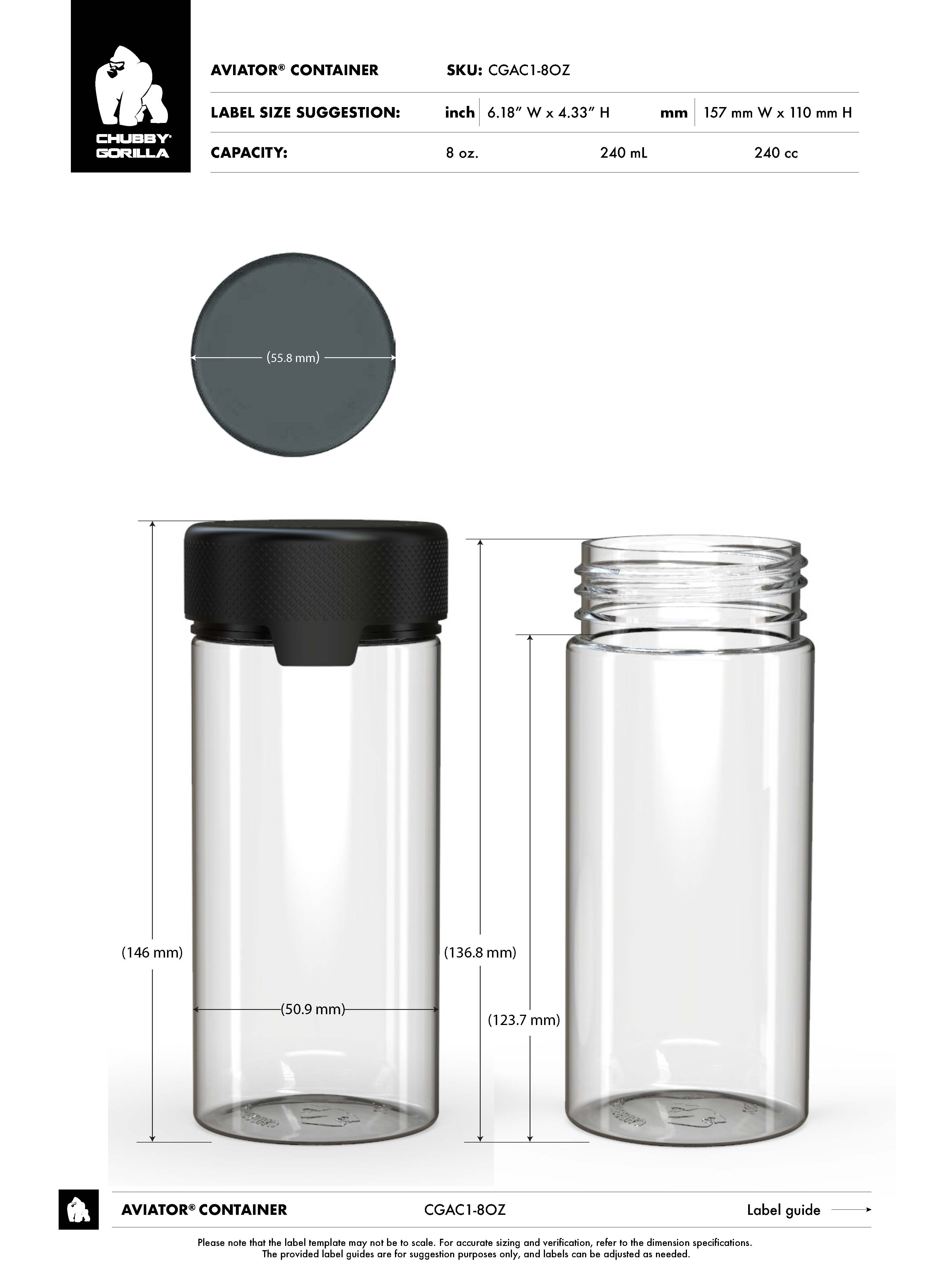 8OZ CR AVIATOR CONTAINER WITH LINER & TAMPER EVIDENT (CLEAR CONTAINER WITH BLACK CLOSURE)