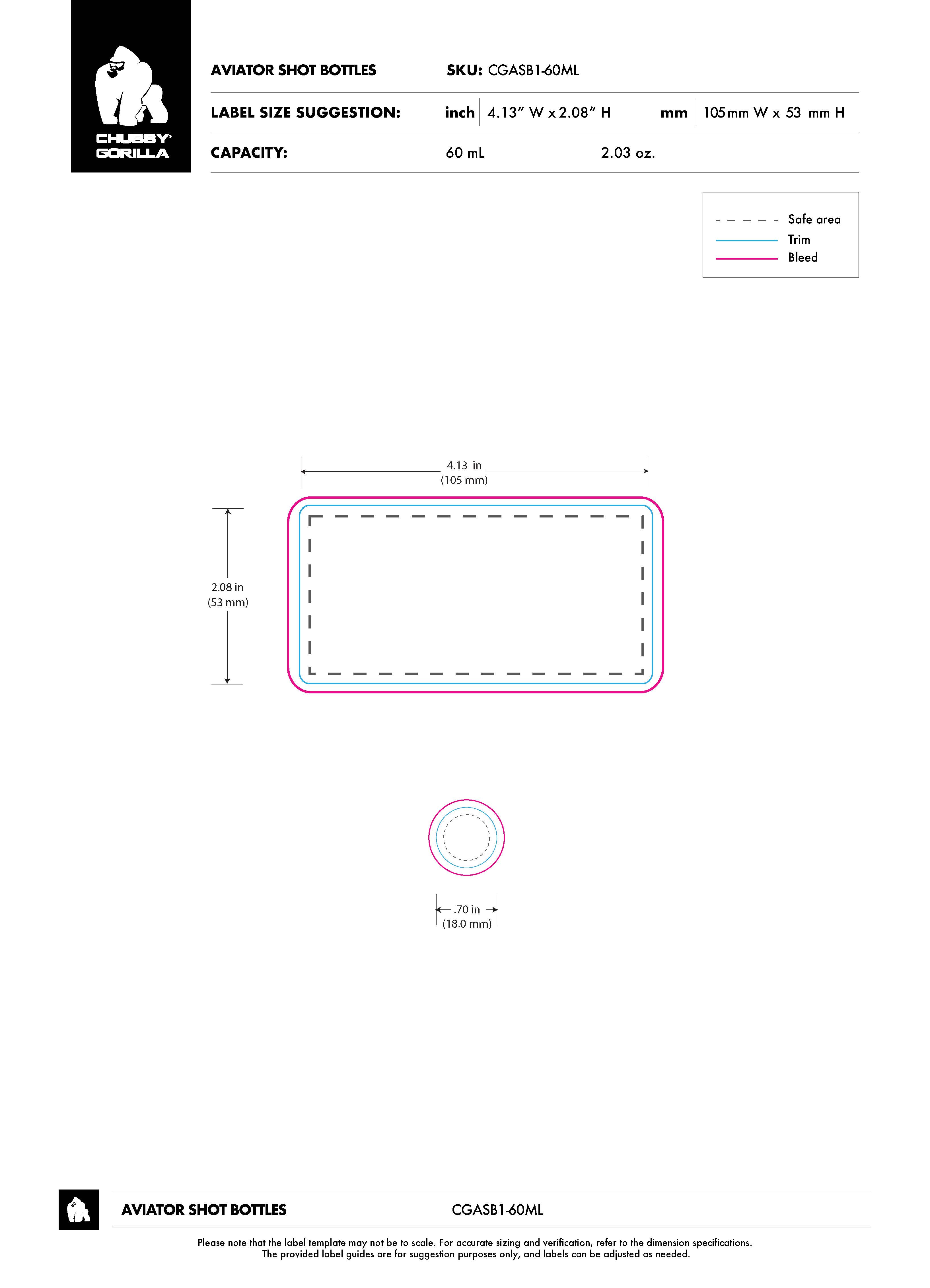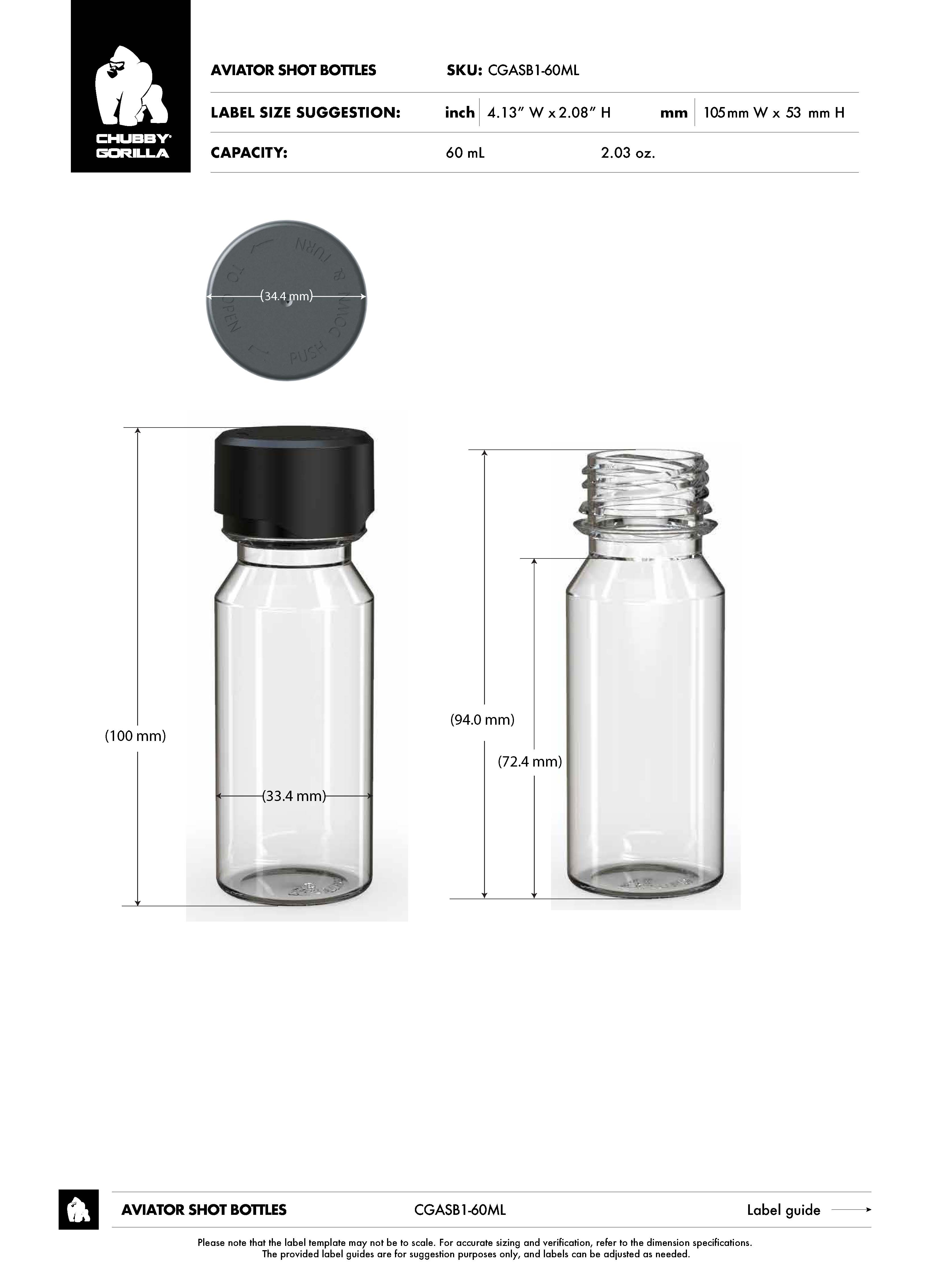 60ML CR AVIATOR SHOT BOTTLE WITH TAMPER EVIDENT (CLEAR BOTTLE WITH CLEAR CLOSURE)