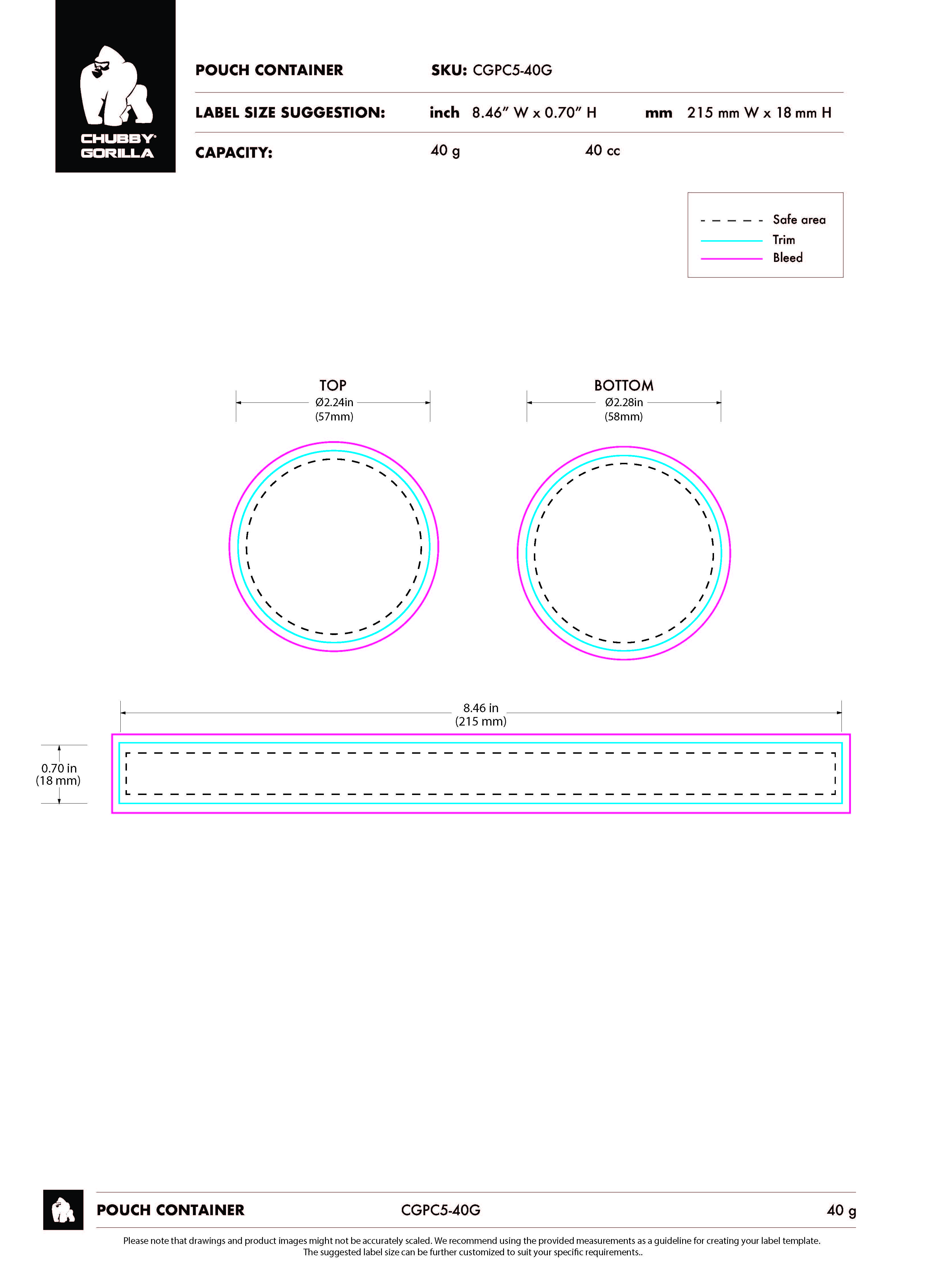 40G CHUBBY GORILLA® DUAL COMPARTMENT POUCH CONTAINER WITH CR UPPER CLOSURE (STANDARD MATTE NATURAL CONTAINER WITH OPAQUE BLACK CLOSURES)
