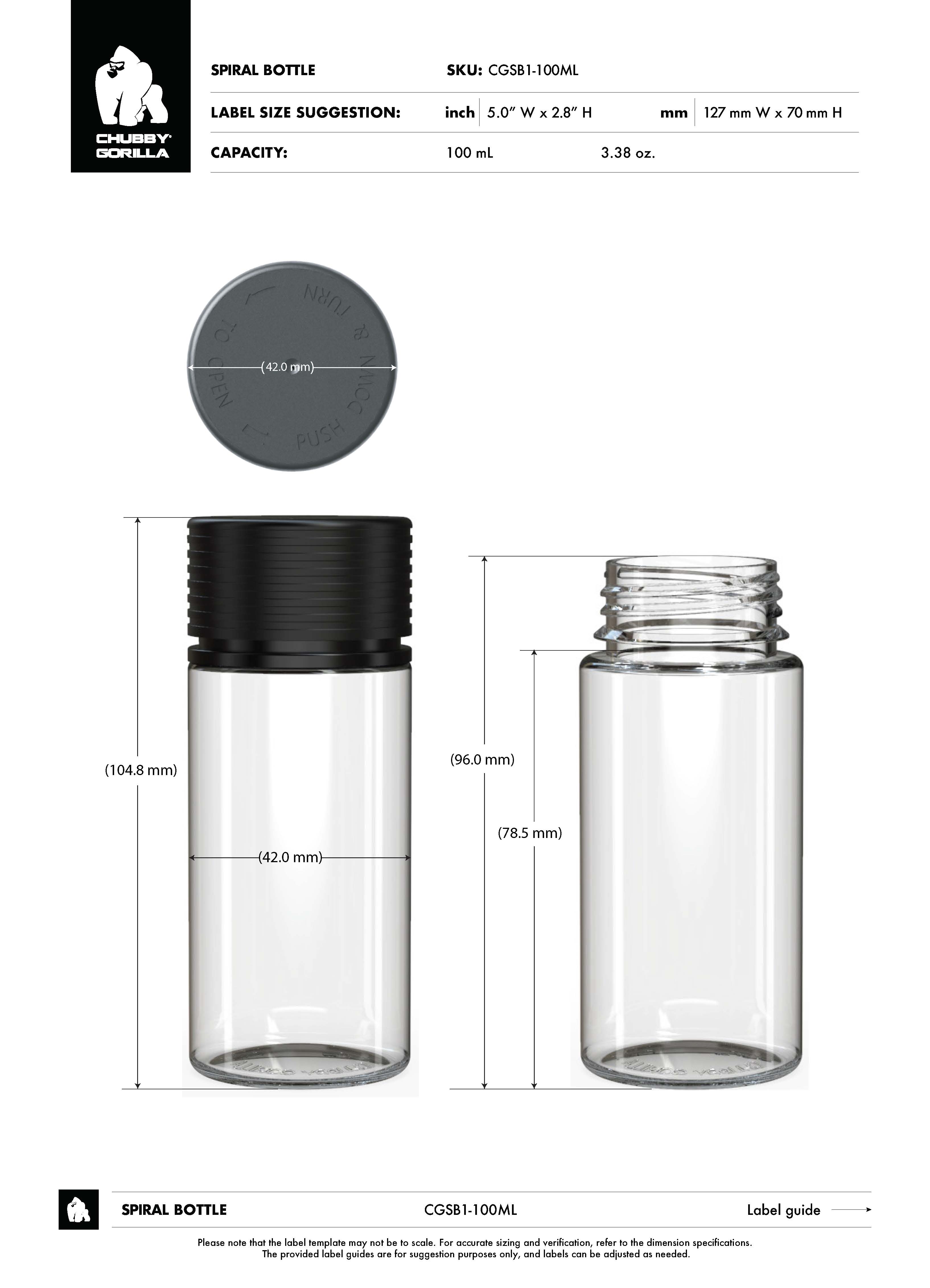 100ML SPIRAL CR BOTTLE WITH INNER SEAL & TAMPER EVIDENT BREAK-OFF BAND (OPAQUE BLACK BOTTLE WITH OPAQUE BLACK CLOSURE)