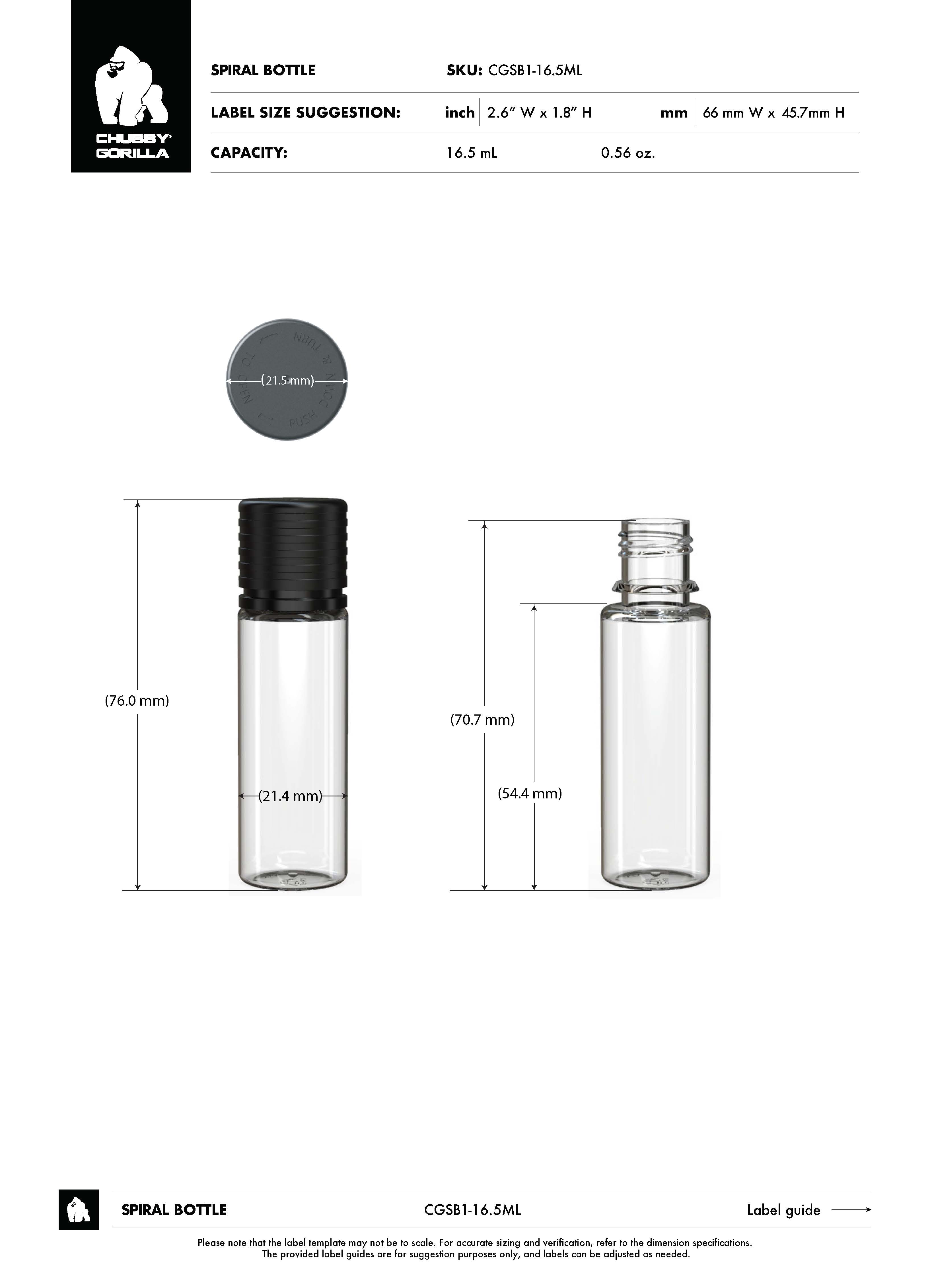16.5ML CR SPIRAL BOTTLE WITH TAMPER EVIDENT (CLEAR BOTTLE WITH BLACK CLOSURE)