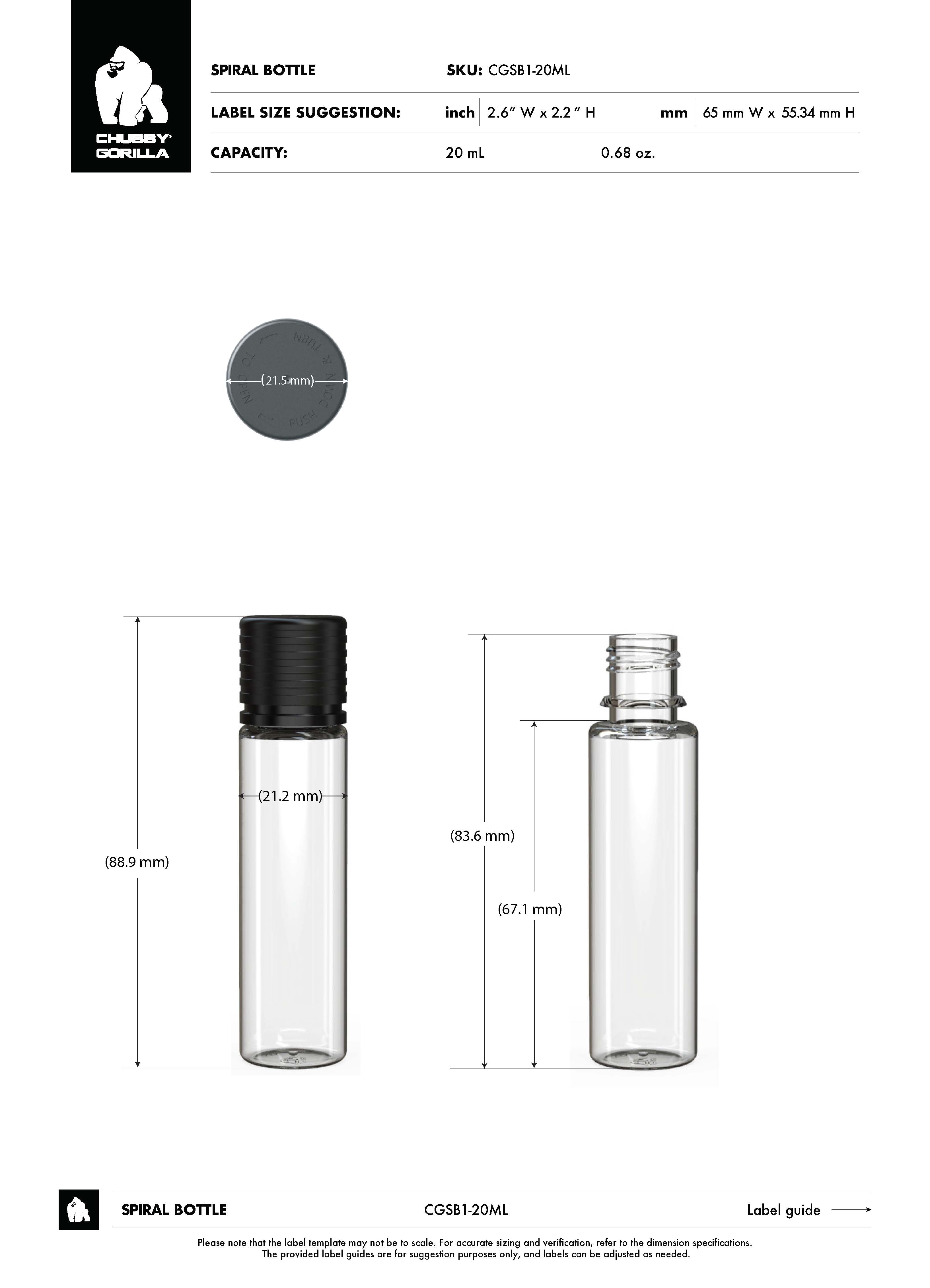 20ML CR SPIRAL BOTTLE WITH TAMPER EVIDENT (CLEAR BOTTLE WITH BLACK CLOSURE)