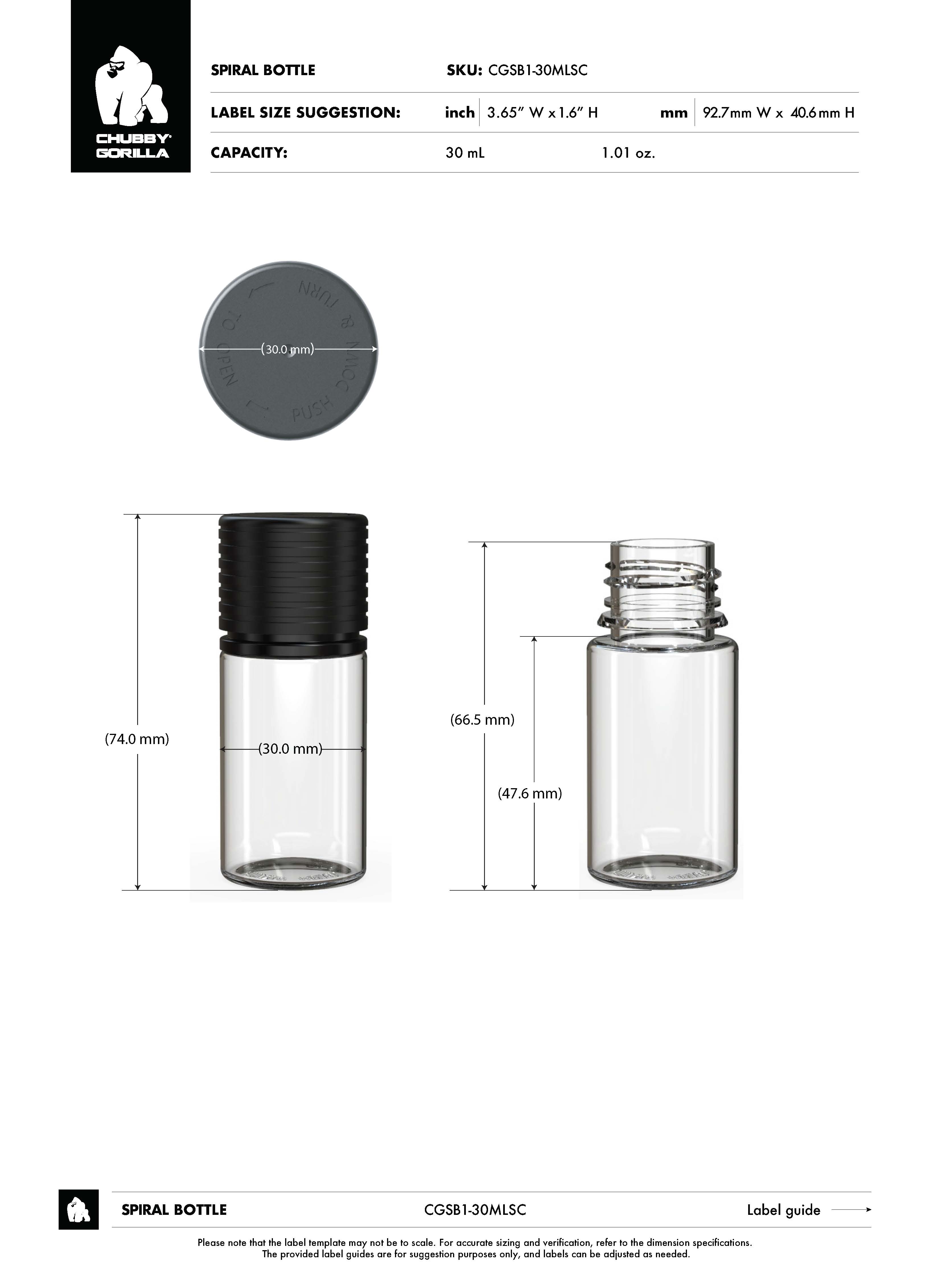30ML CR STUBBY SPIRAL BOTTLE WITH TAMPER EVIDENT (BLACK BOTTLE WITH BLACK CLOSURE)