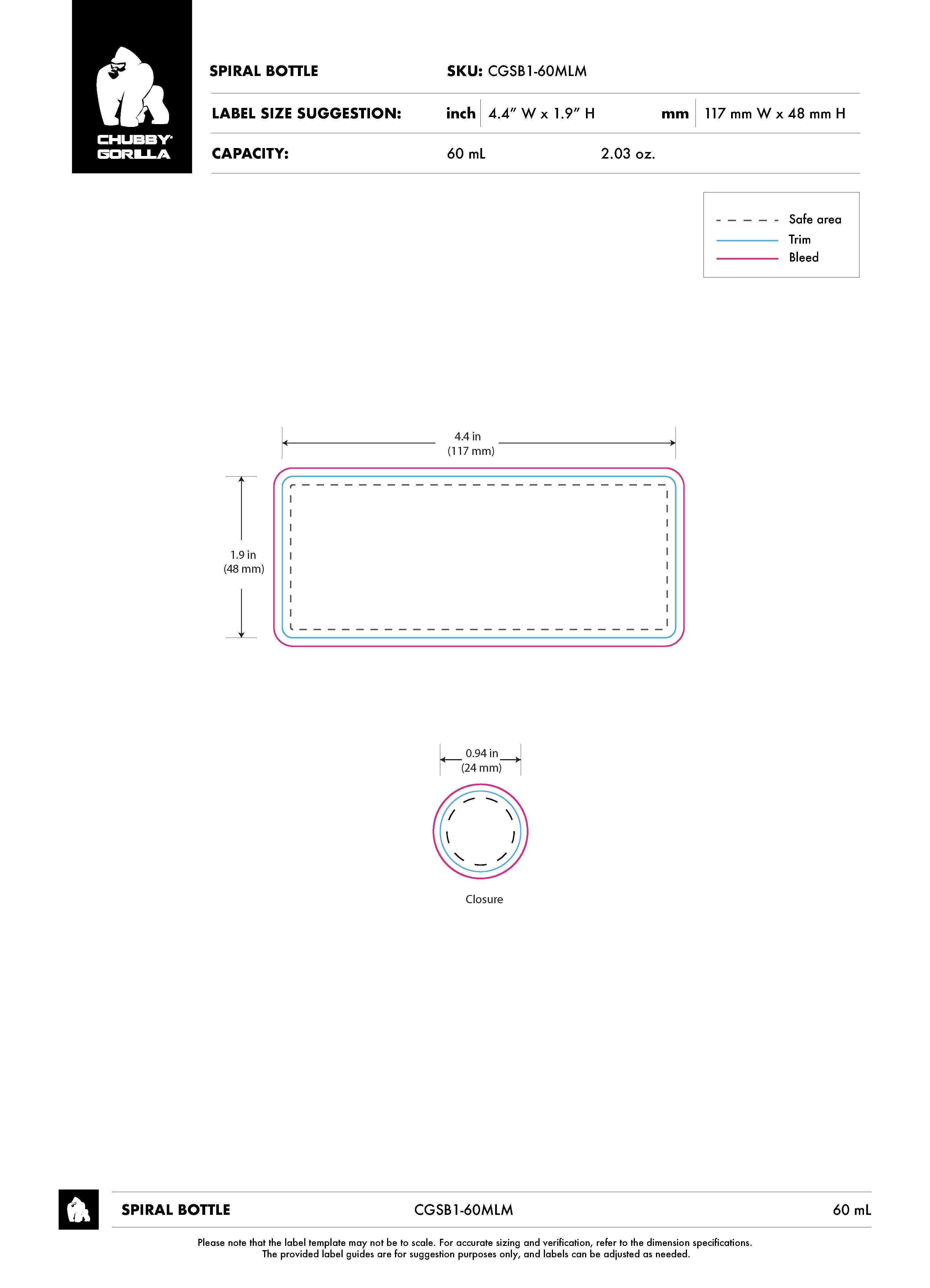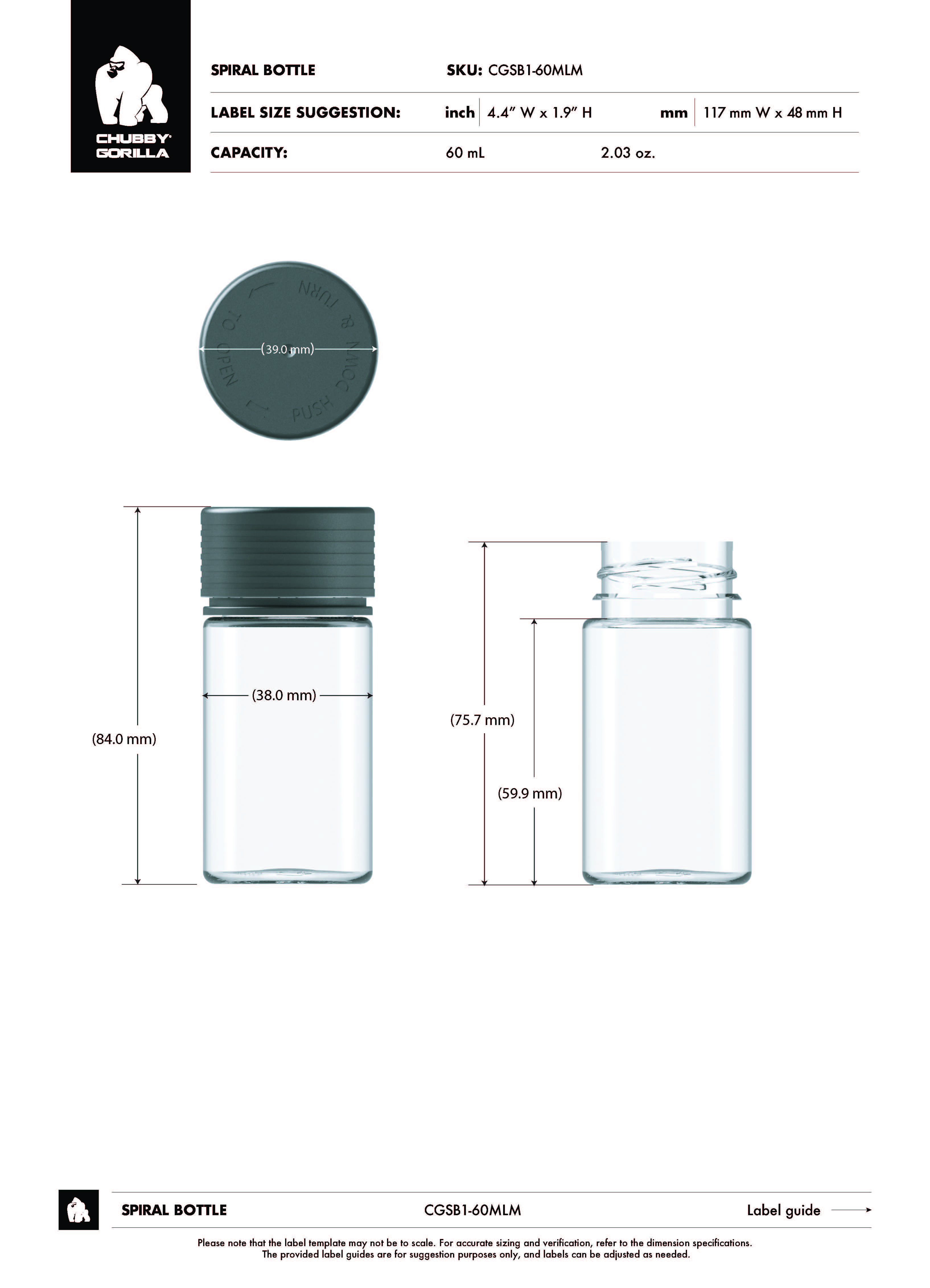60ML CR MINI SPIRAL BOTTLE WITH LINER & TAMPER EVIDENT (CLEAR BOTTLE WITH WHITE CLOSURE)