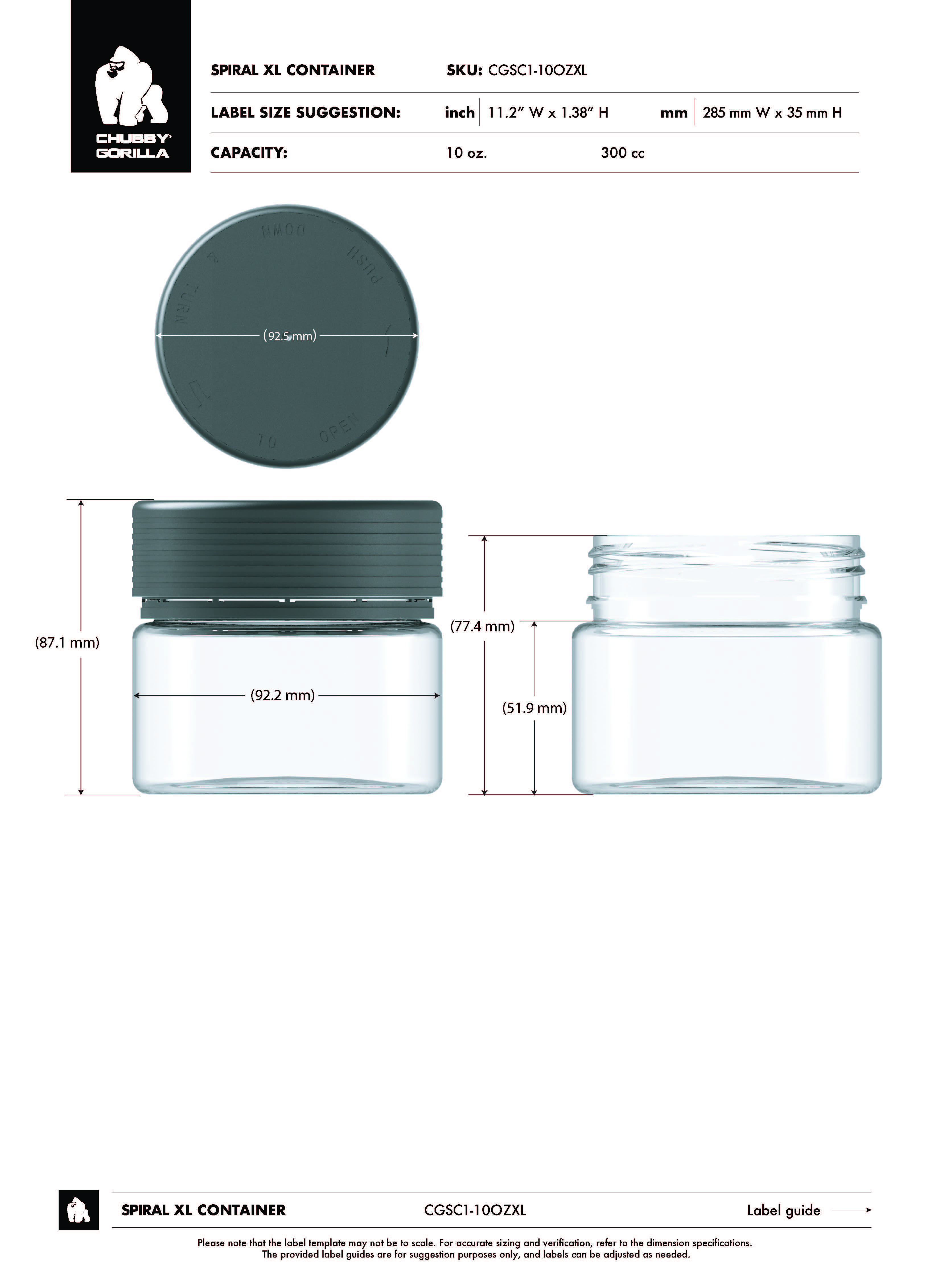 10OZ (300CC) SPIRAL CR XL CONTAINER WITH INNER SEAL & TAMPER EVIDENT BREAK-OFF BAND (OPAQUE BLACK CONTAINER WITH OPAQUE BLACK CLOSURE)