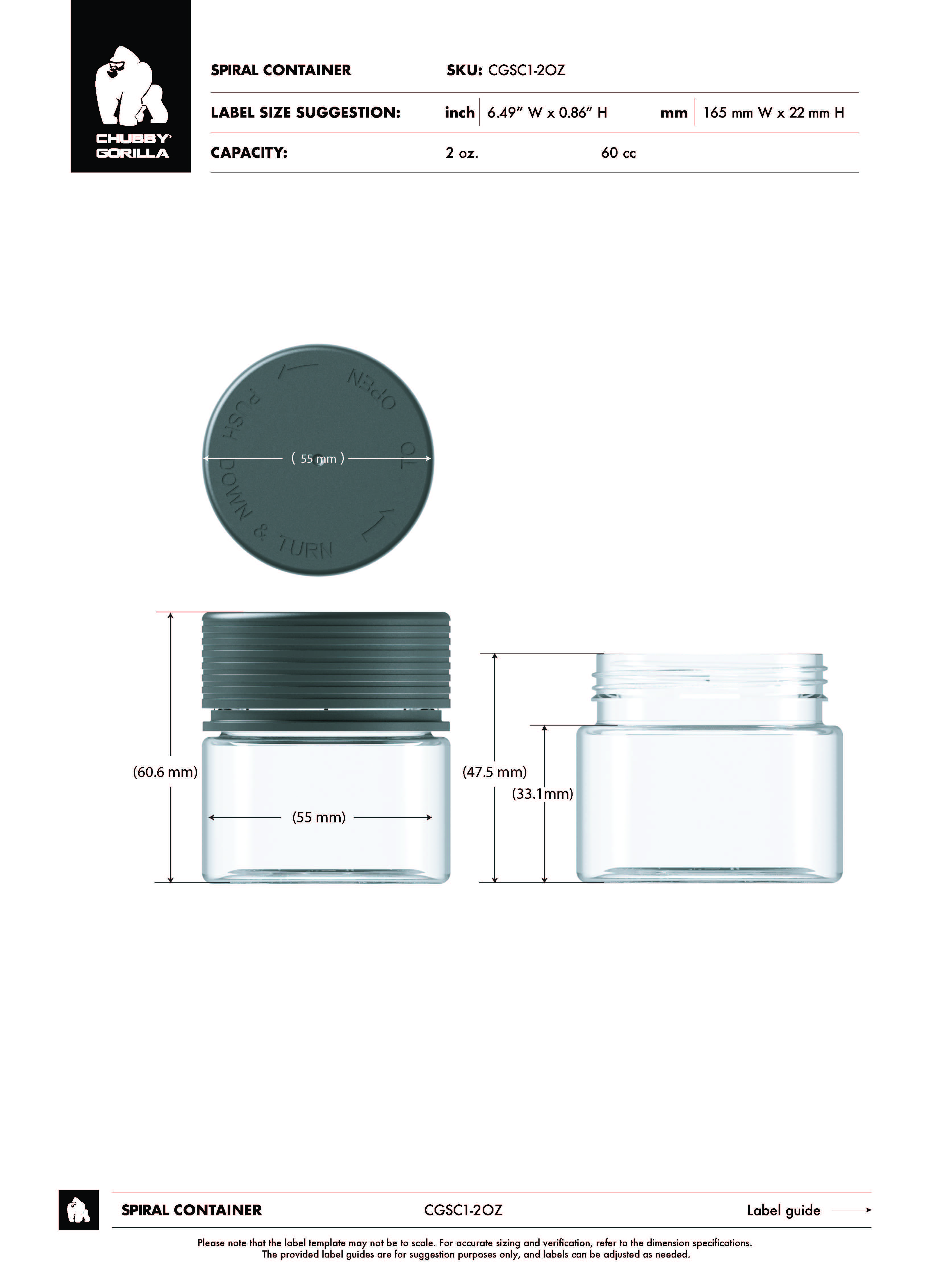 2OZ (60CC) SPIRAL CR CONTAINER WITH INTEGRATED LINER & TAMPER EVIDENT BREAK-OFF BAND (OPAQUE BLACK CONTAINER WITH OPAQUE BLACK CLOSURE)