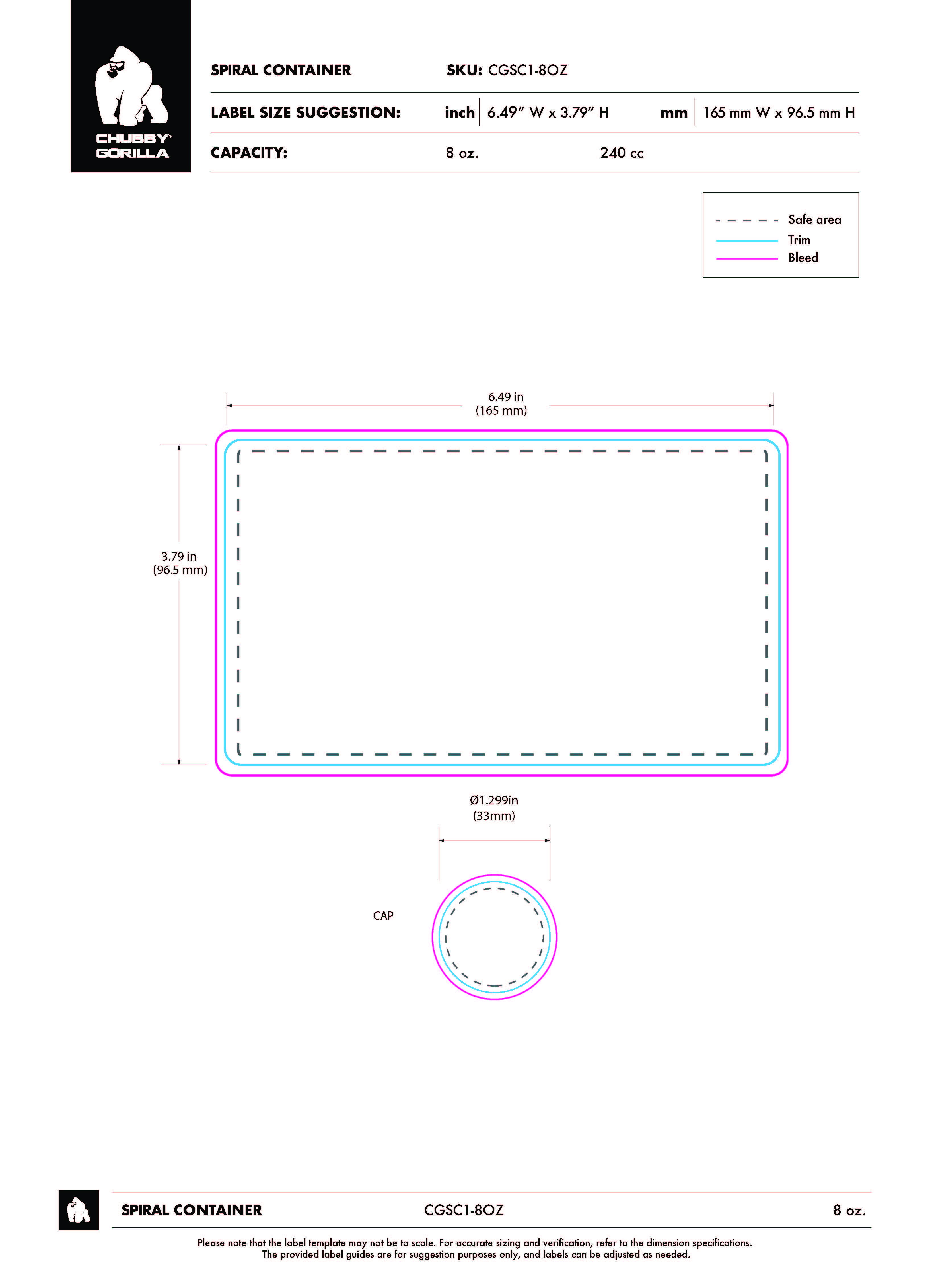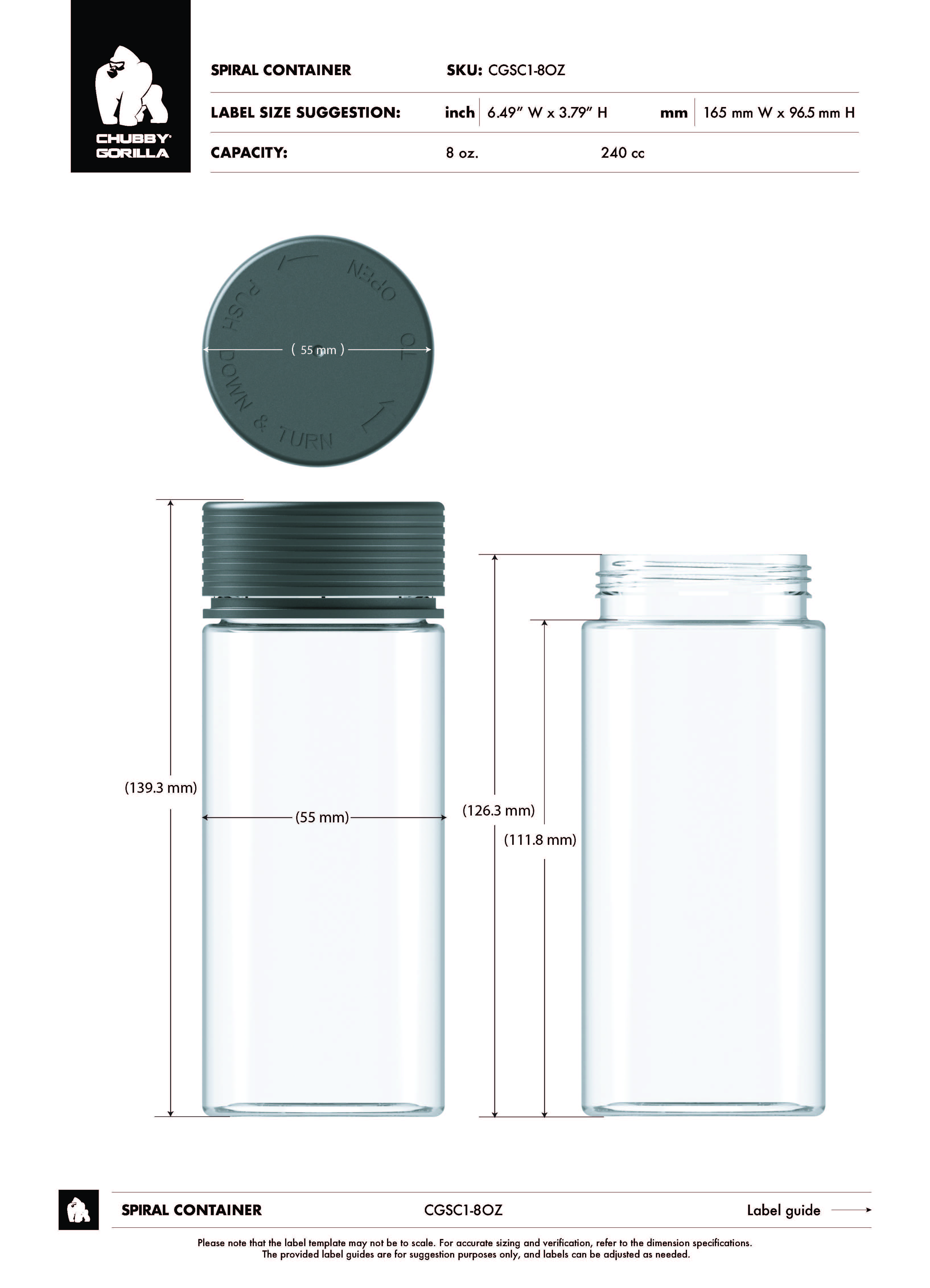 8OZ CR SPIRAL CONTAINER WITH LINER & TAMPER EVIDENT (CLEAR CONTAINER WITH WHITE CLOSURE)