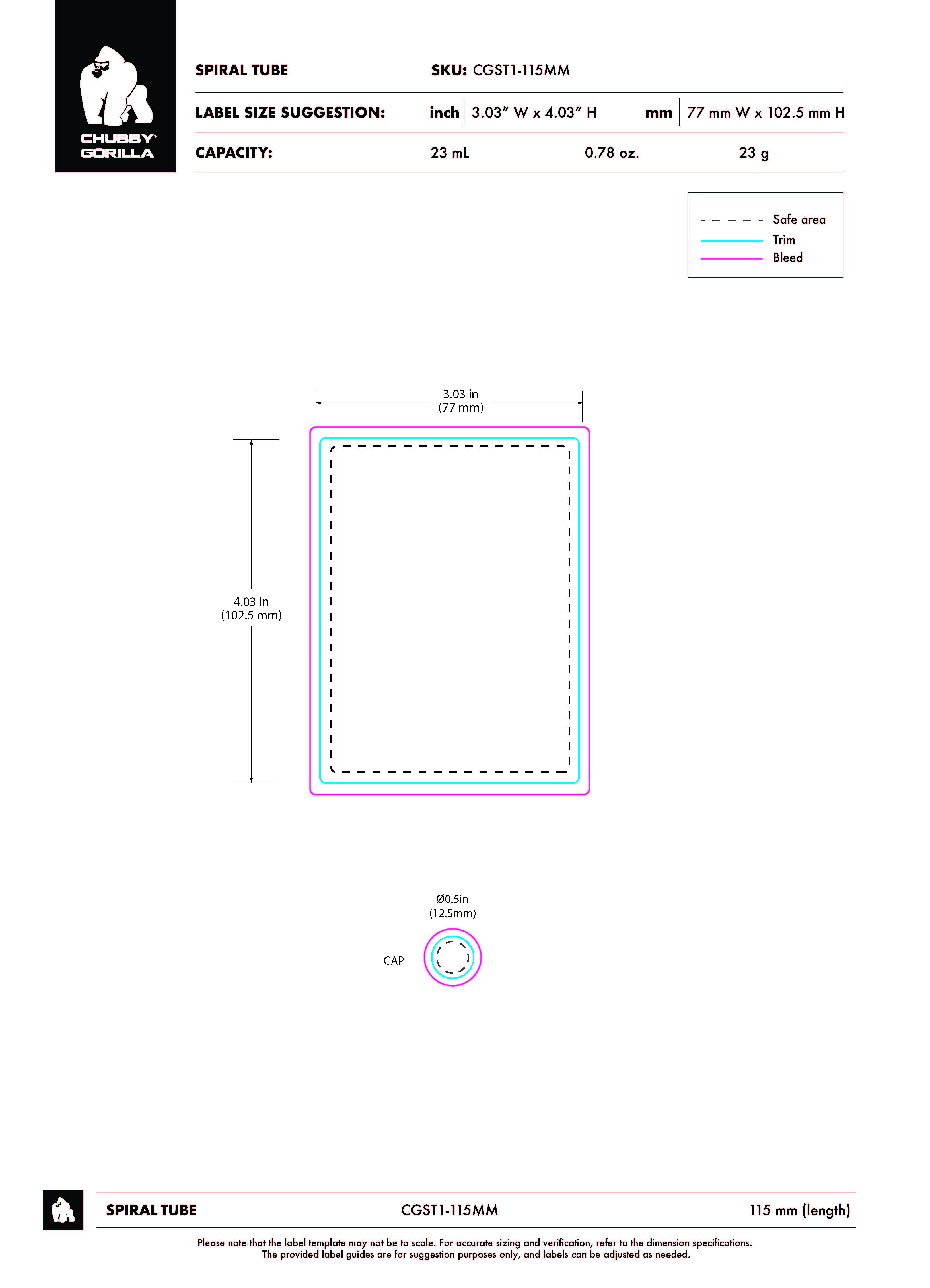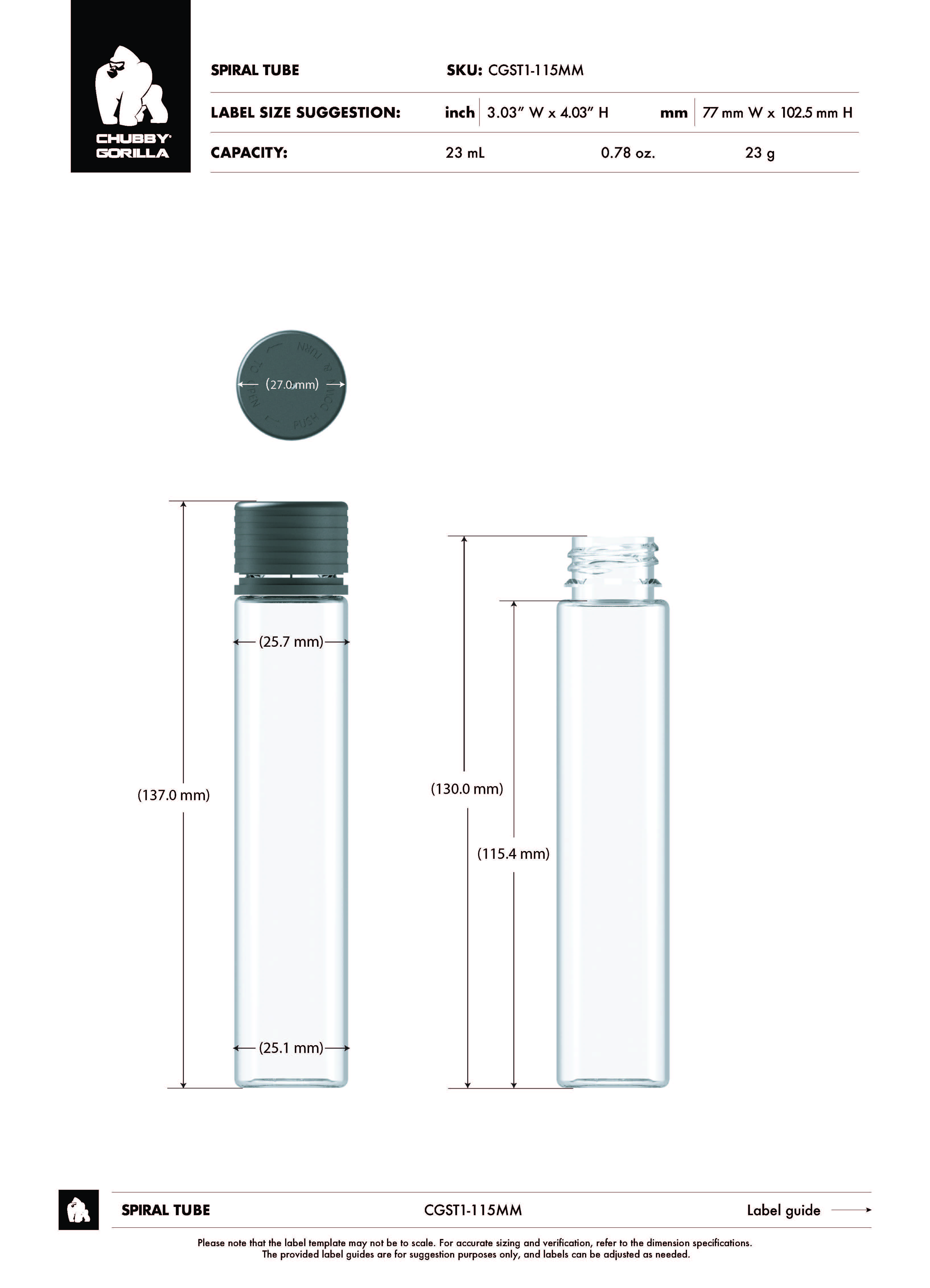 115MM CR SPIRAL TUBE WITH LINER & TAMPER EVIDENT (CLEAR TUBE WITH BLACK CLOSURE)