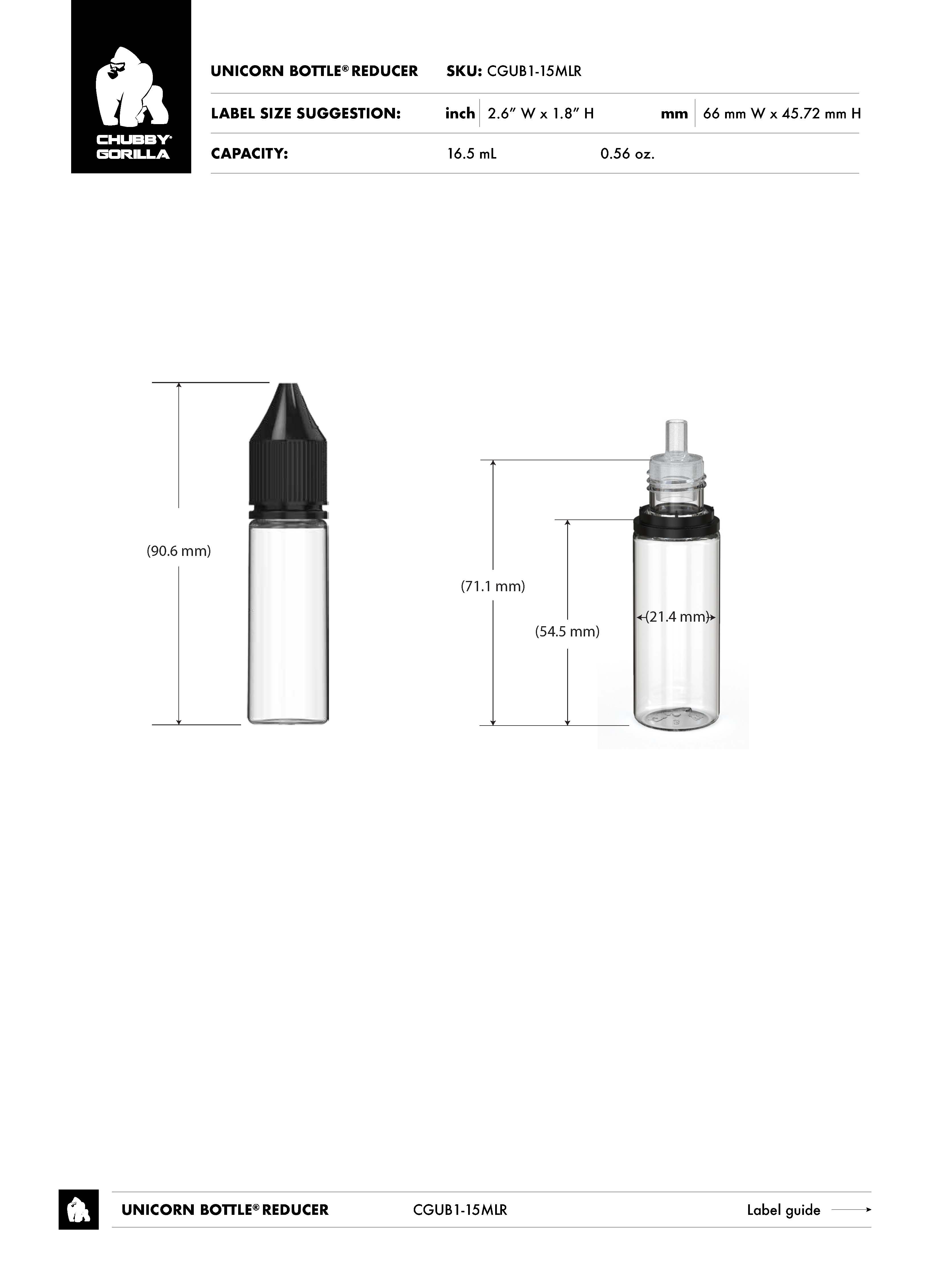 15ML CR REDUCER UNICORN BOTTLE WITH TAMPER EVIDENT (WHITE BOTTLE WITH WHITE CLOSURE)
