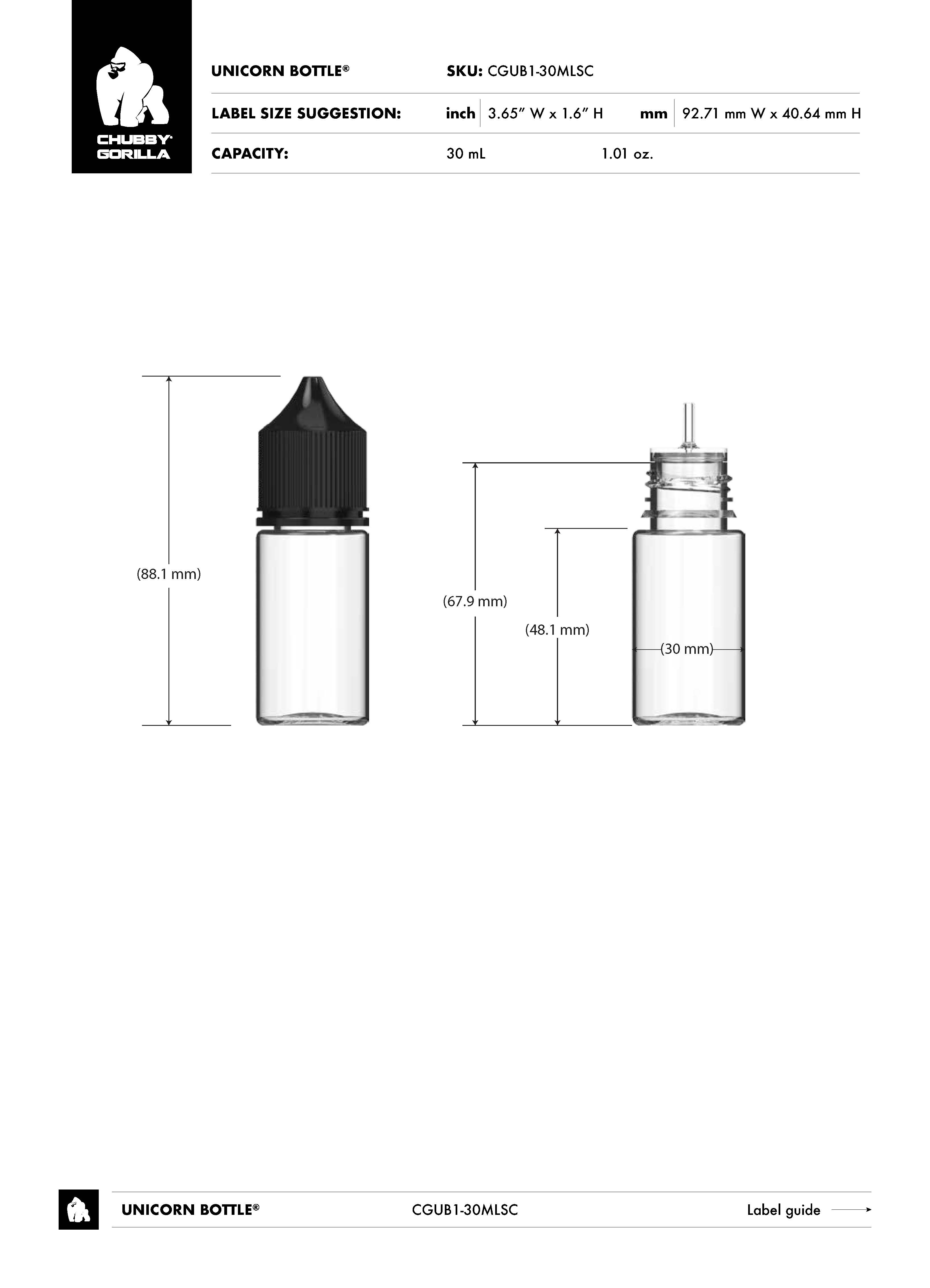 30ML CR STUBBY UNICORN BOTTLE WITH TAMPER EVIDENT (WHITE BOTTLE WITH WHITE CLOSURE)