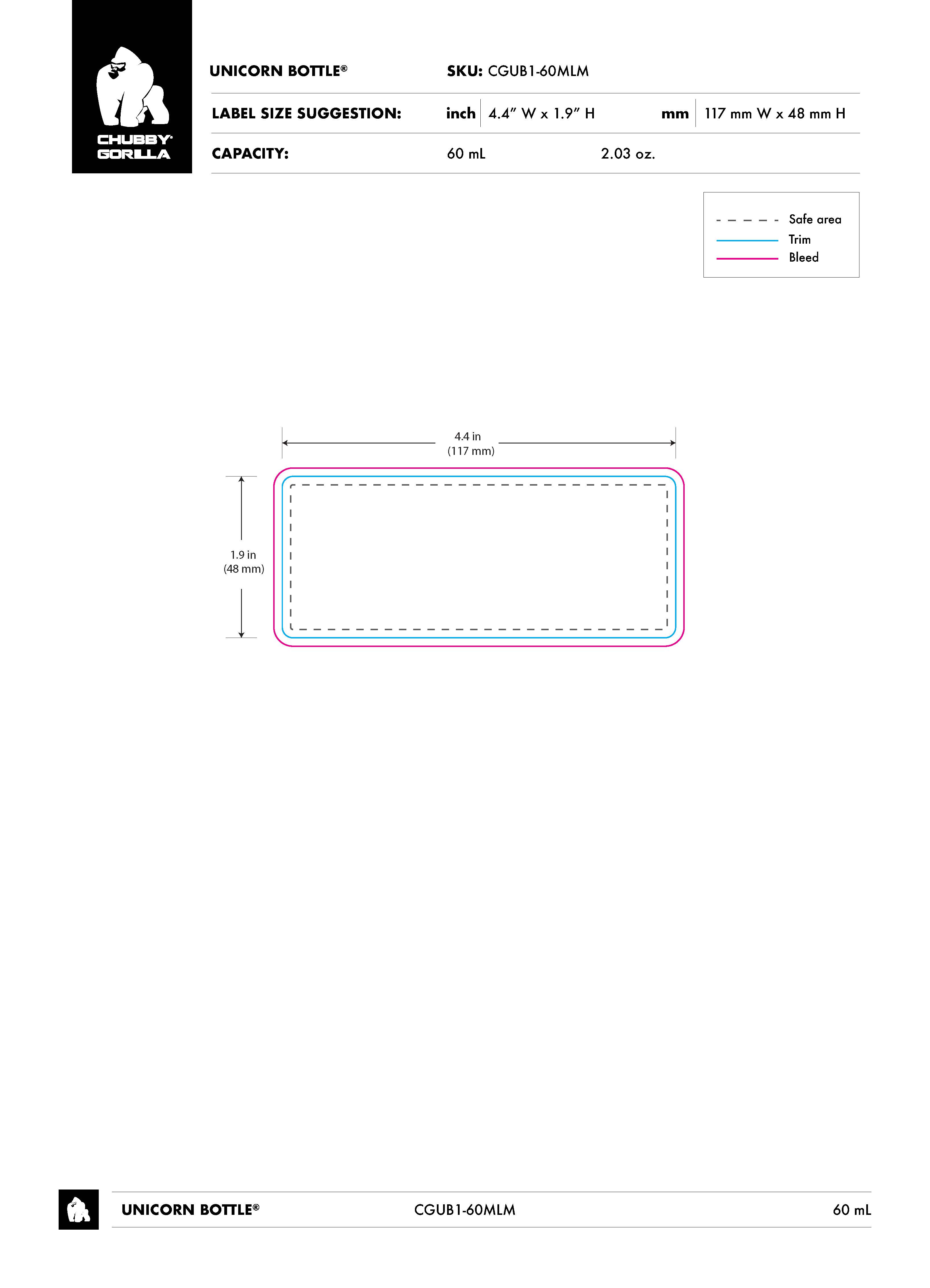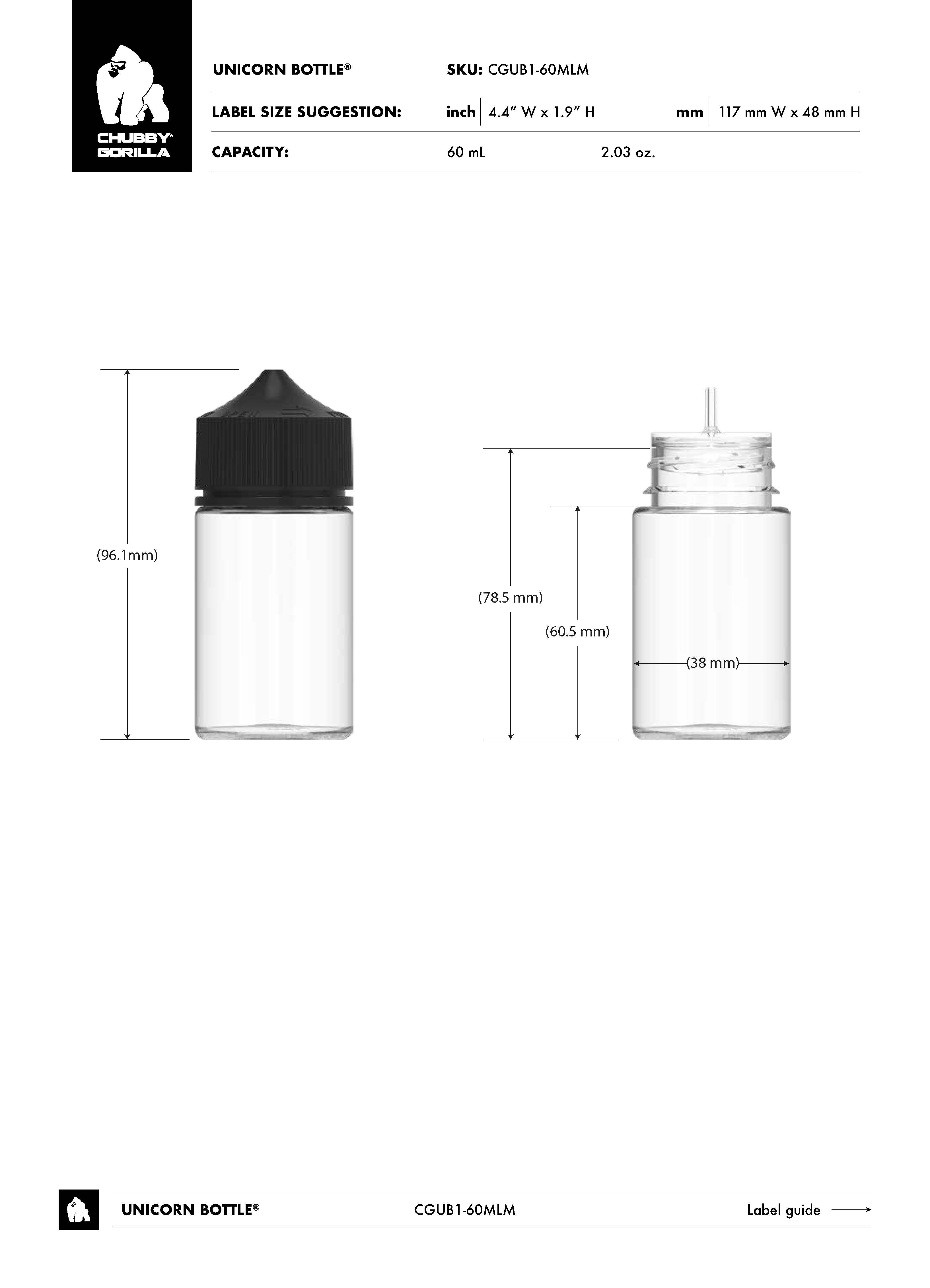 60ML CR MINI UNICORN BOTTLE WITH TAMPER EVIDENT (CLEAR BOTTLE WITH BLACK CLOSURE)