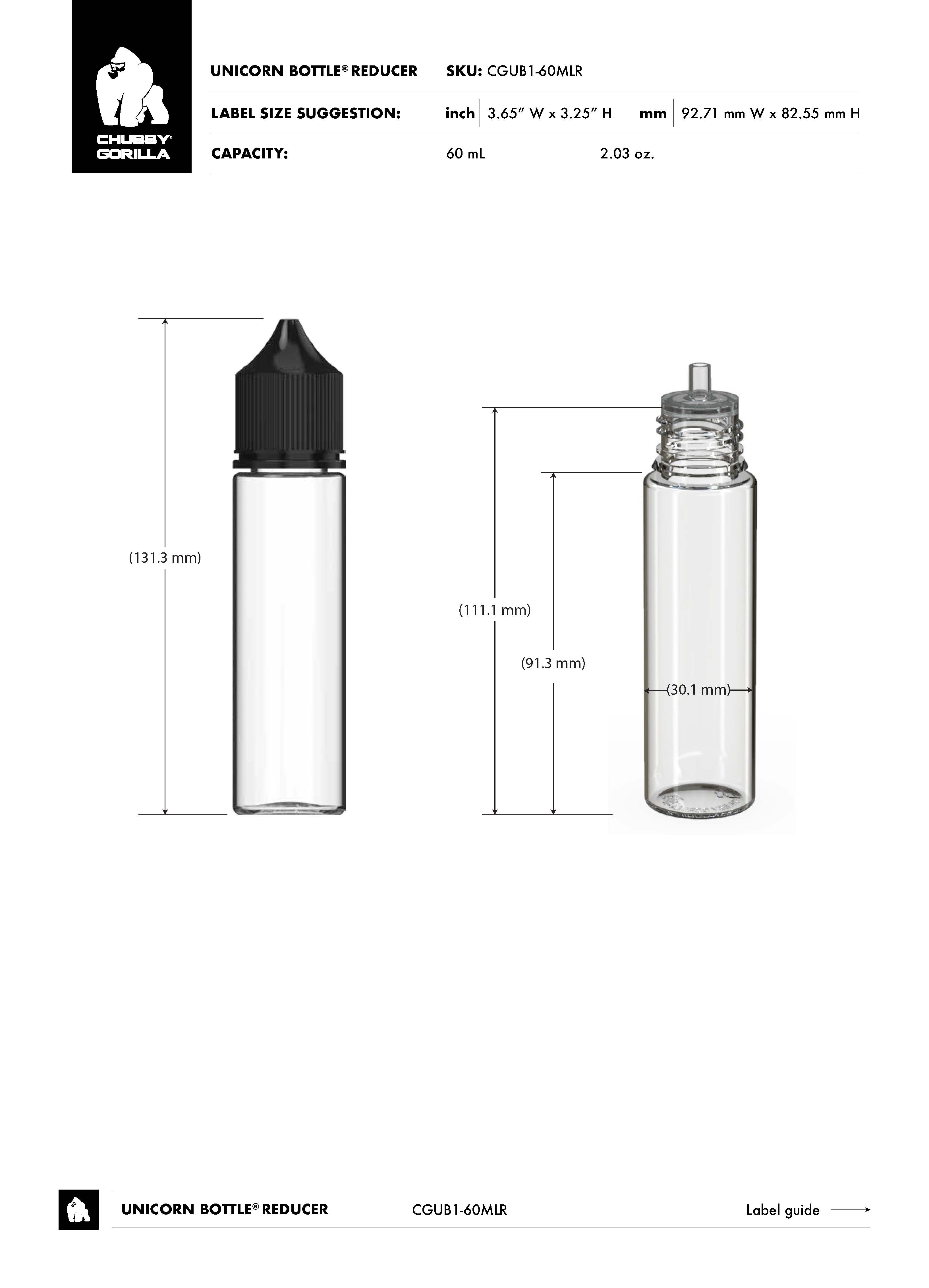 60ML CR REDUCER UNICORN BOTTLE WITH TAMPER EVIDENT (WHITE BOTTLE WITH WHITE CLOSURE)