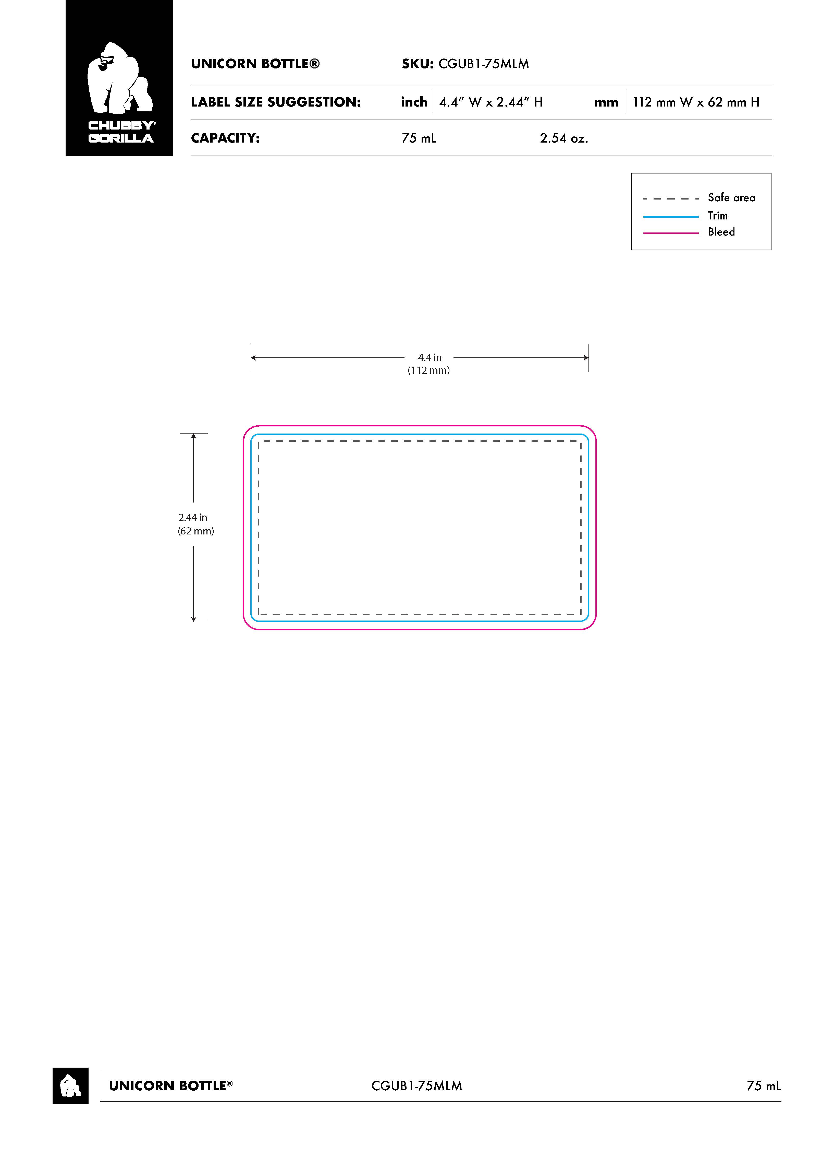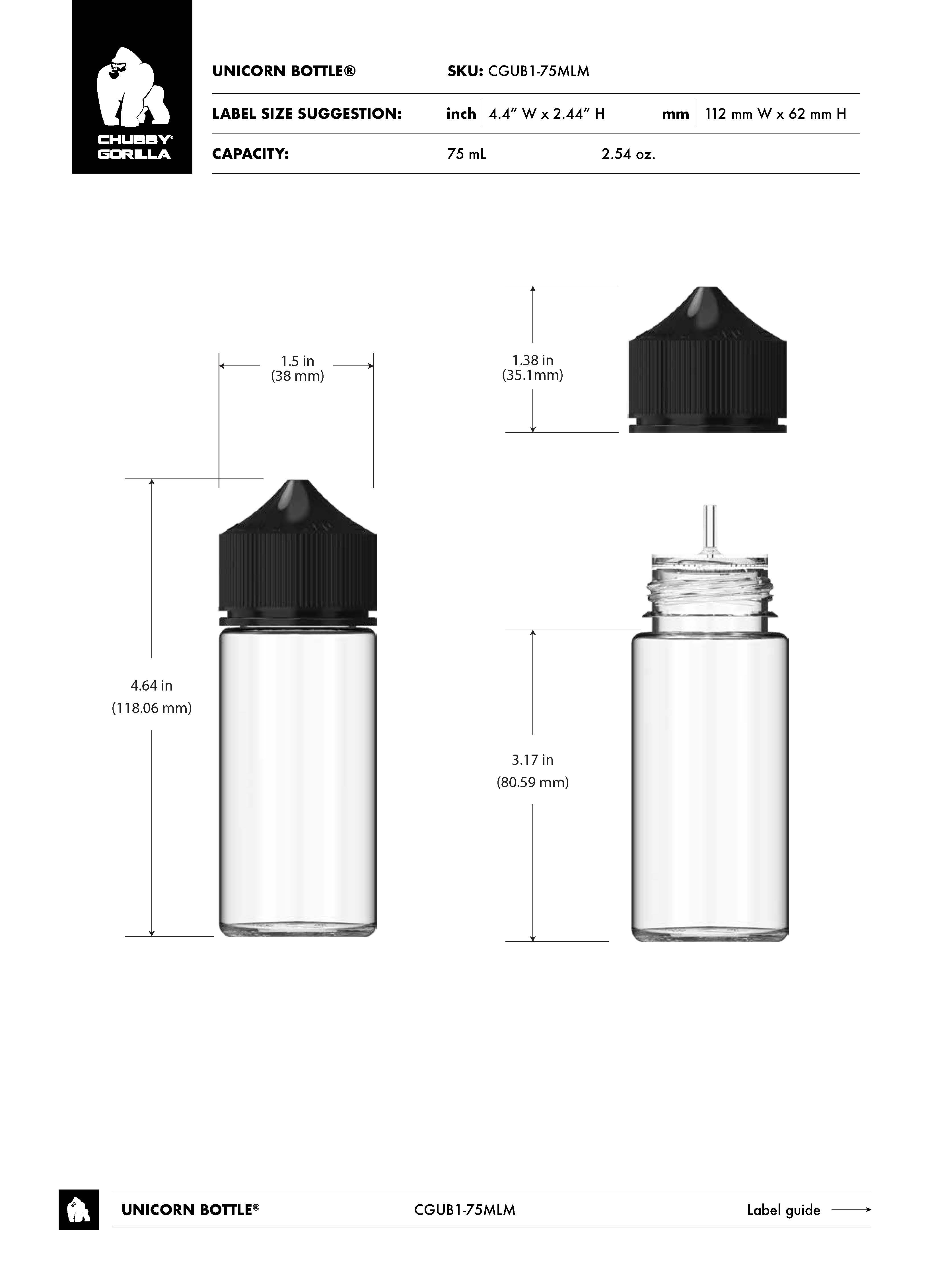 75ML MINI UNICORN BOTTLE WITH TAMPER EVIDENT (CLEAR BOTTLE WITH BLACK CLOSURE)